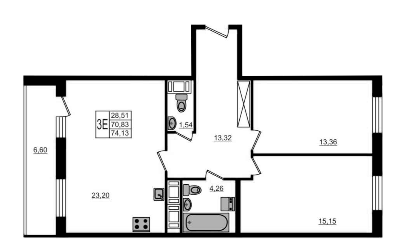 Общая площадь 74.13 м2