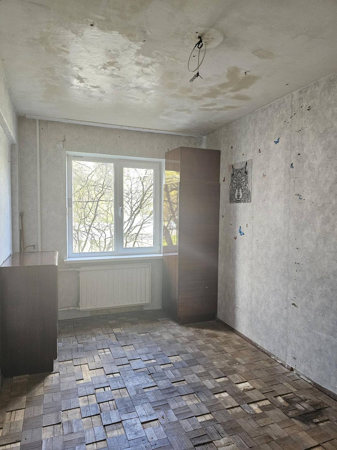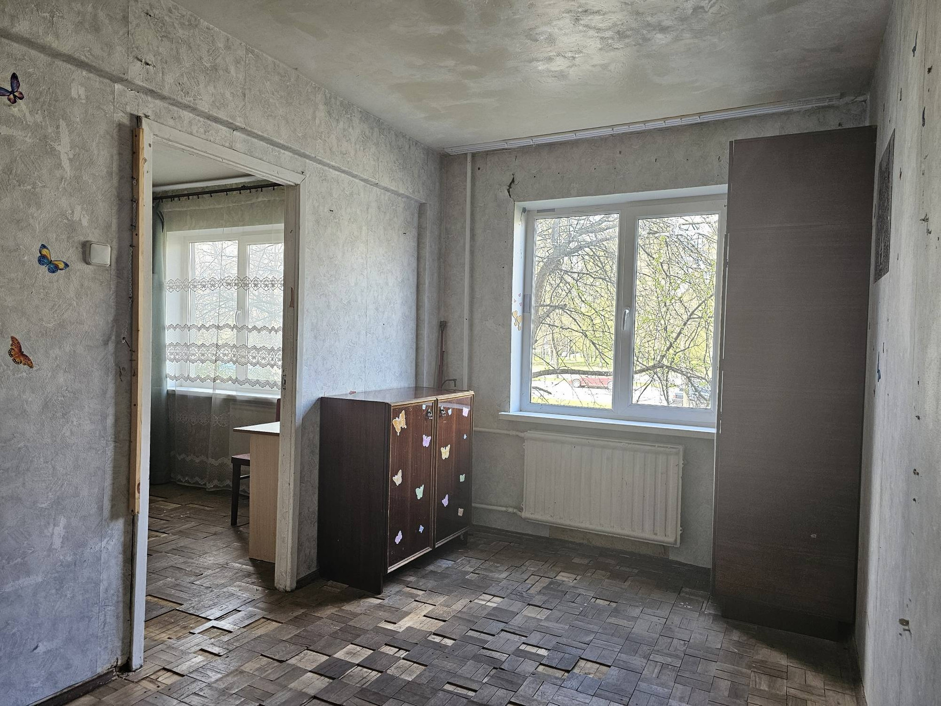 В квартире установлены пластиковые окна, ванная комната-плитка, в остальном требуется ремонт.