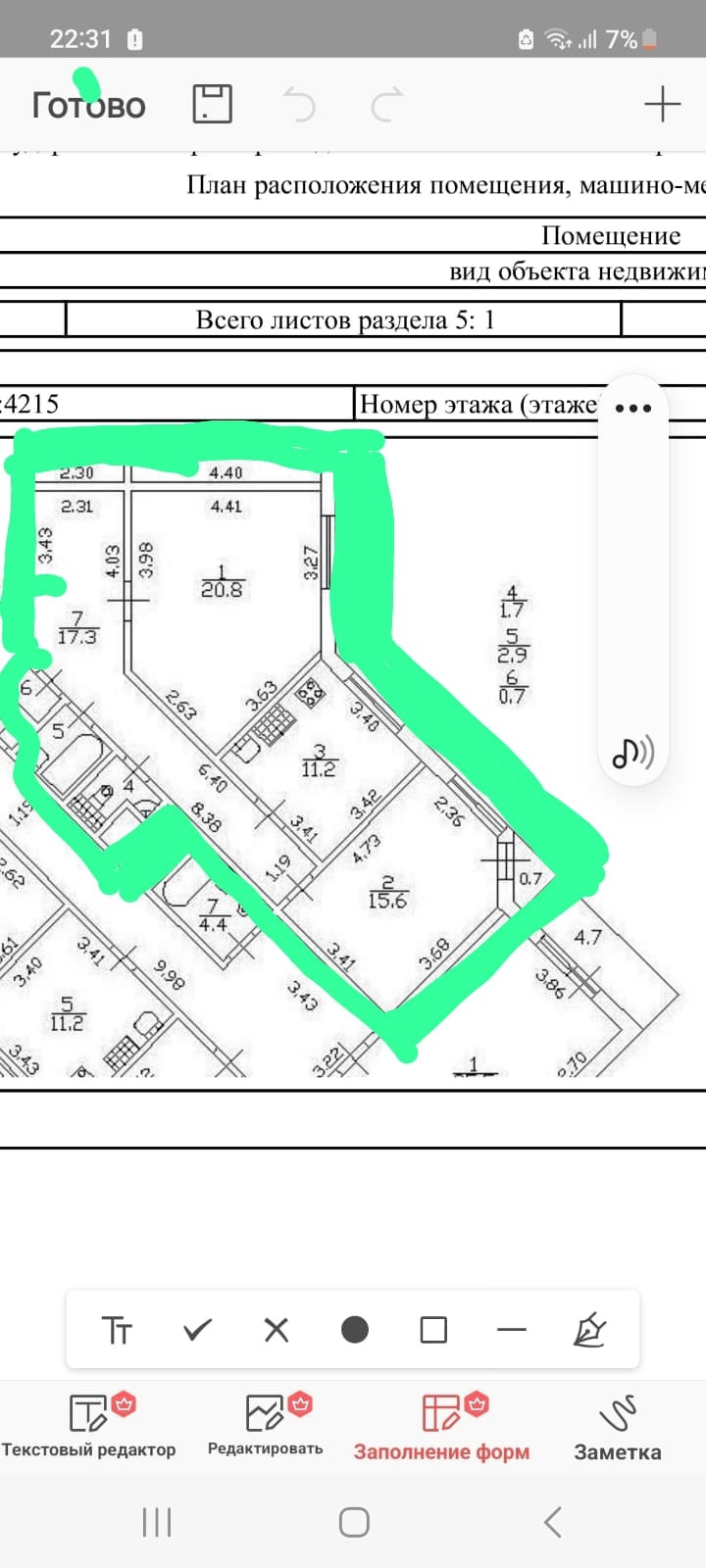 Площадь кухни 20.8 м2