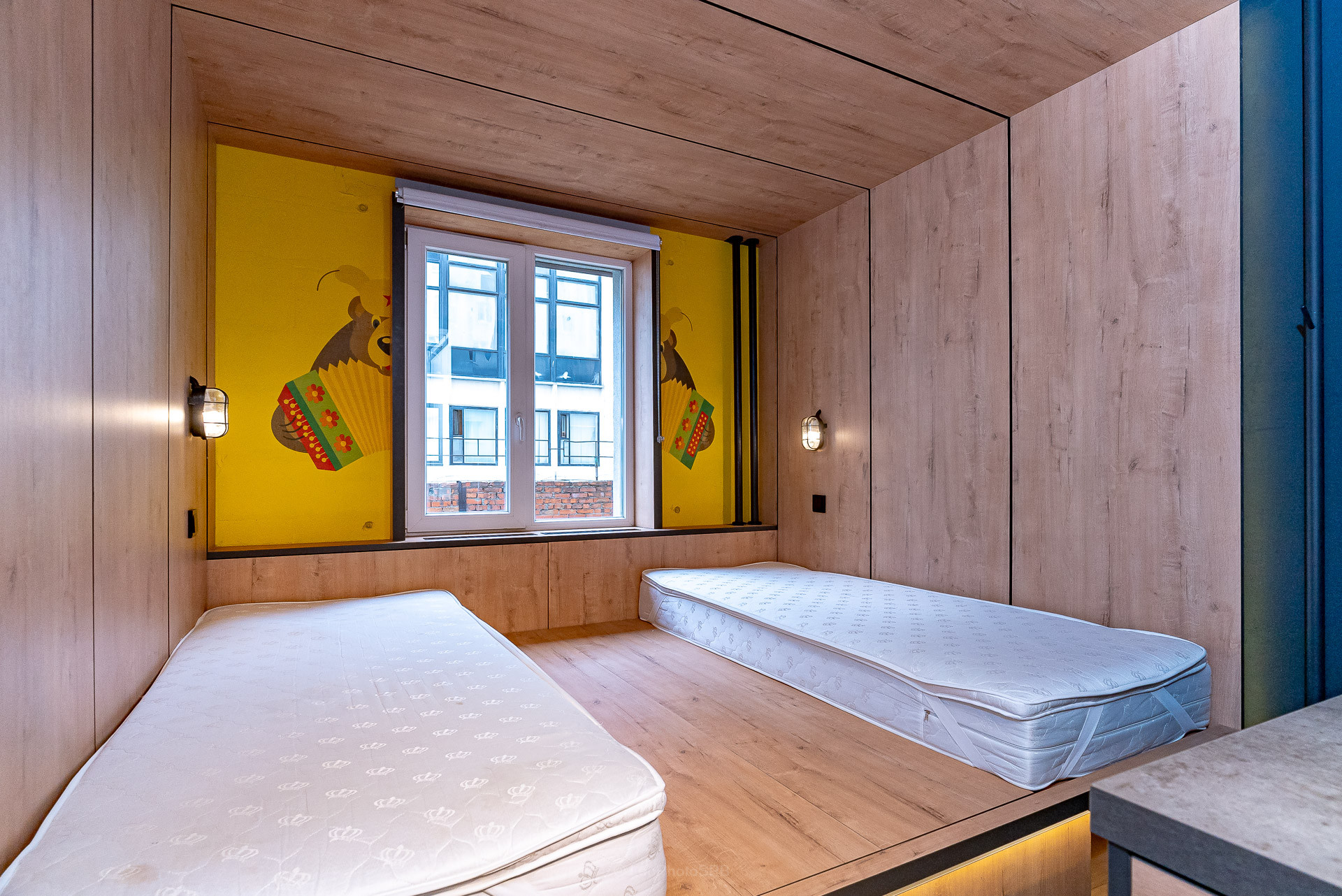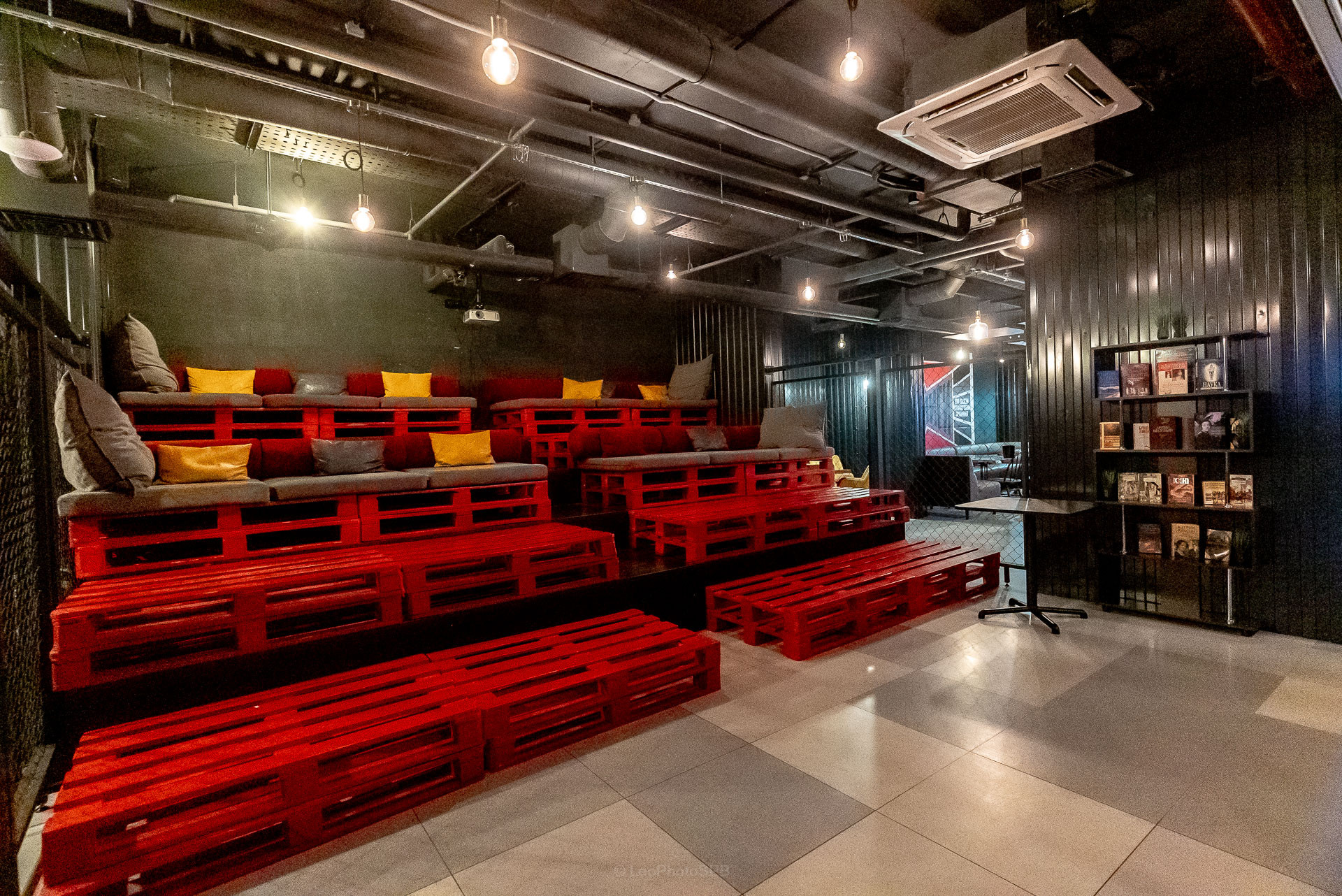 Это зонированные места для работы и проведения досуга: коворкинг, кинотеатр, зал для фитнеса, настольный теннис, прачечная.