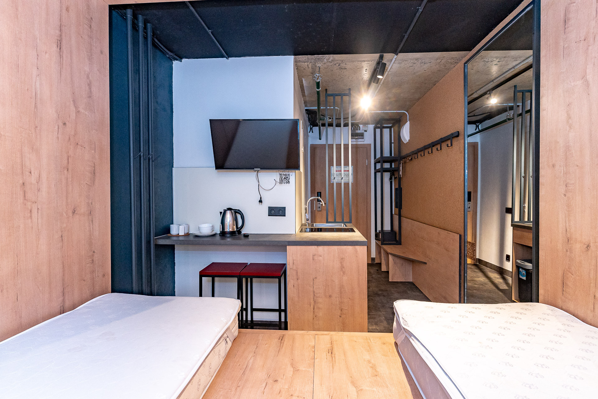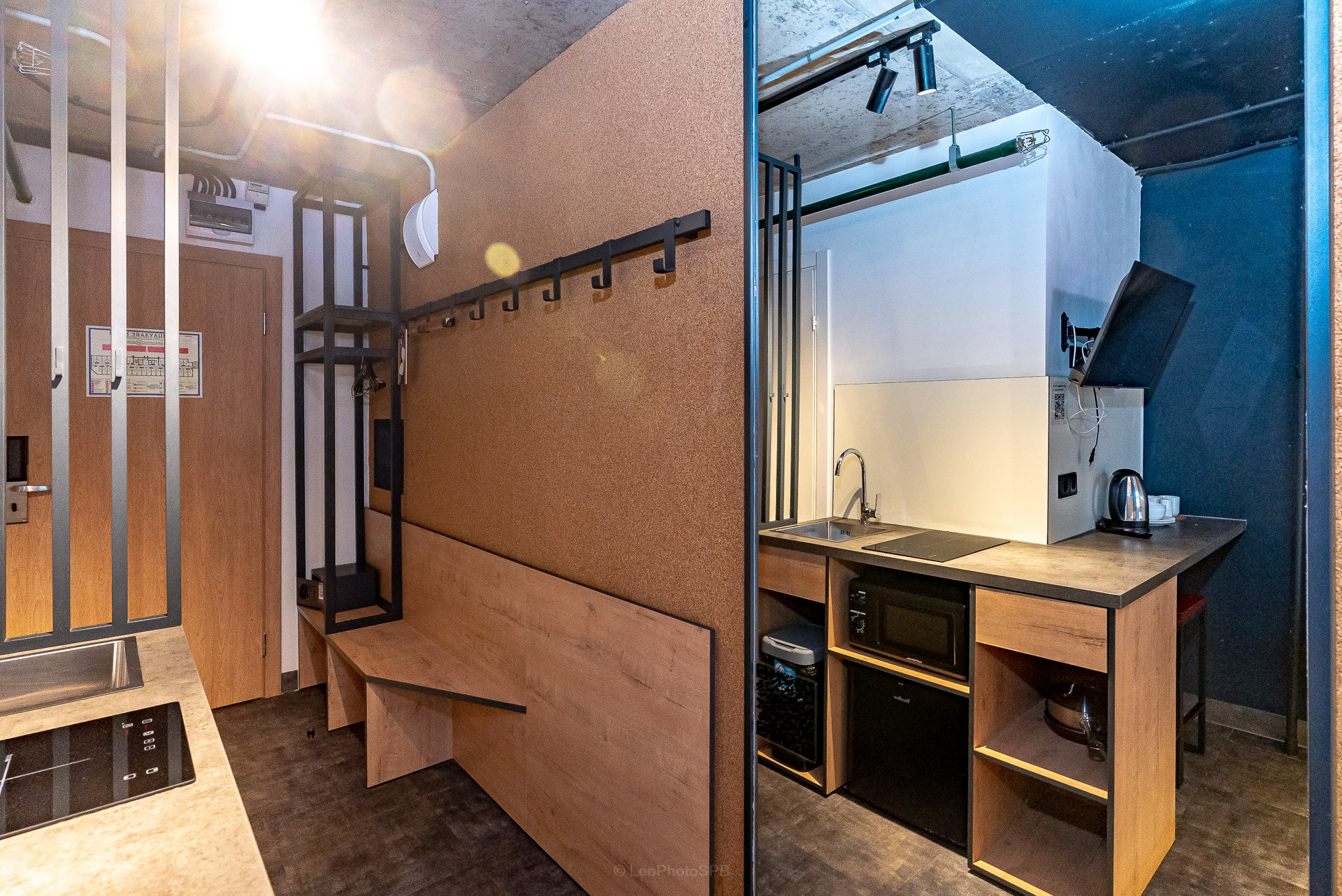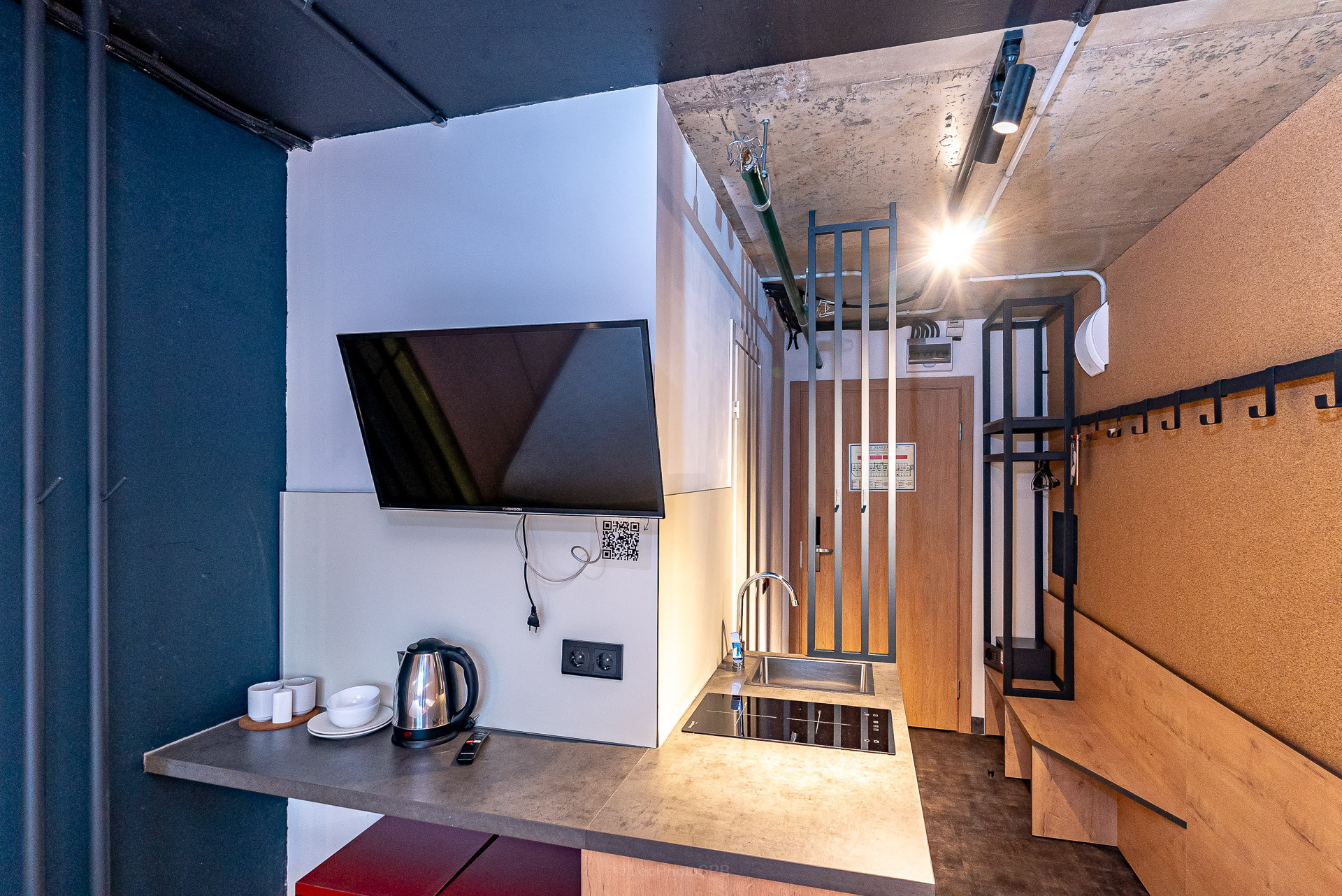 Студия оформлена в стиле лофт. Благодаря удачной планировке сохраняется комфорт и уют. Студия продается полностью укомплектованной, как на фото. Два спальных места, со встроенными нишами для хранения вещей. Кухонный гарнитур со всей необходимой техникой и комплектом посуды. Санузел с душевой кабиной.
