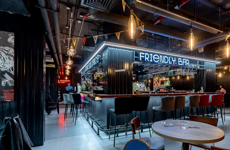 Это бар и кафе, где можно плотно позавтракать или вкусно поужинать перед сном, не выходя из здания.