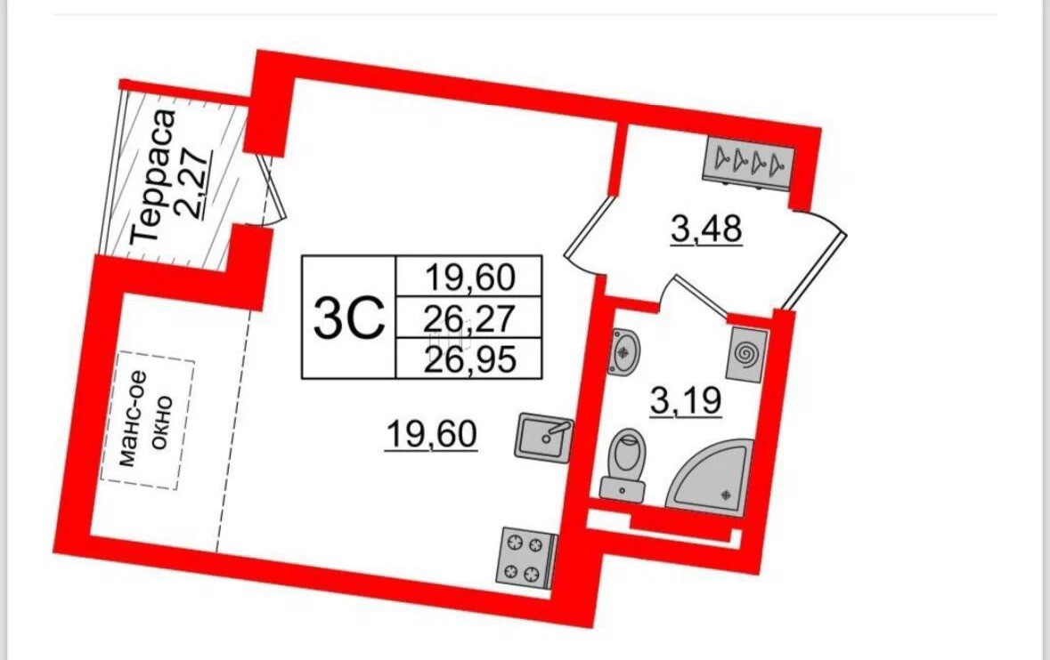 Общая площадь 27 м2