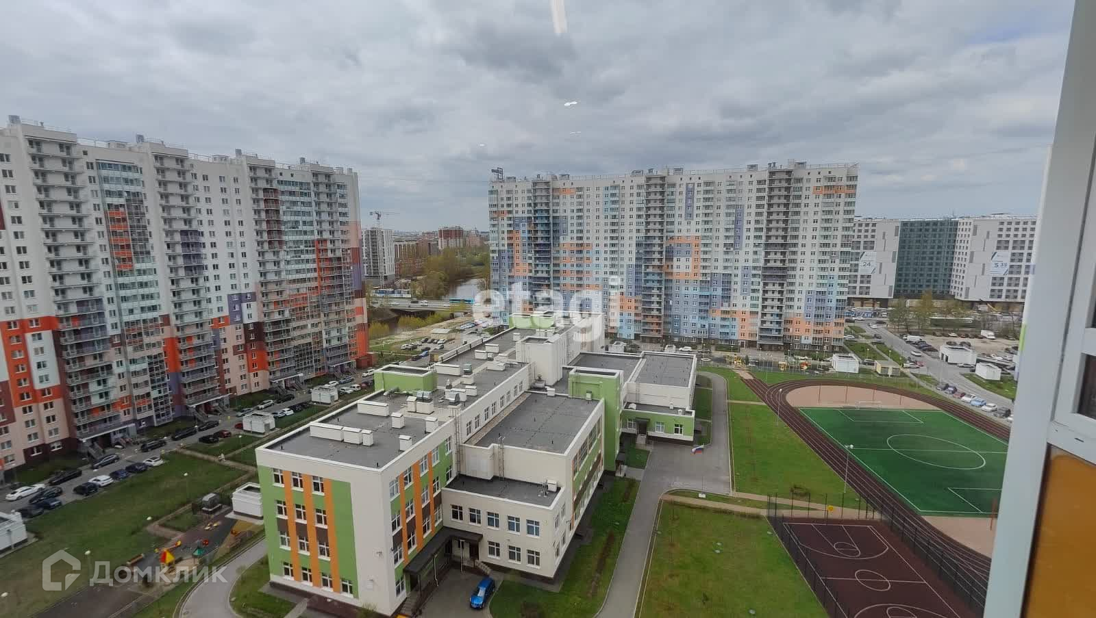 Дом расположен рядом с рекой Охта , где застройщик обустроил зону для прогулки и отдыха. Во дворе располагается Школа с внушительным стадионом и футбольным полем. Также во дворе имеется современный детский садик .