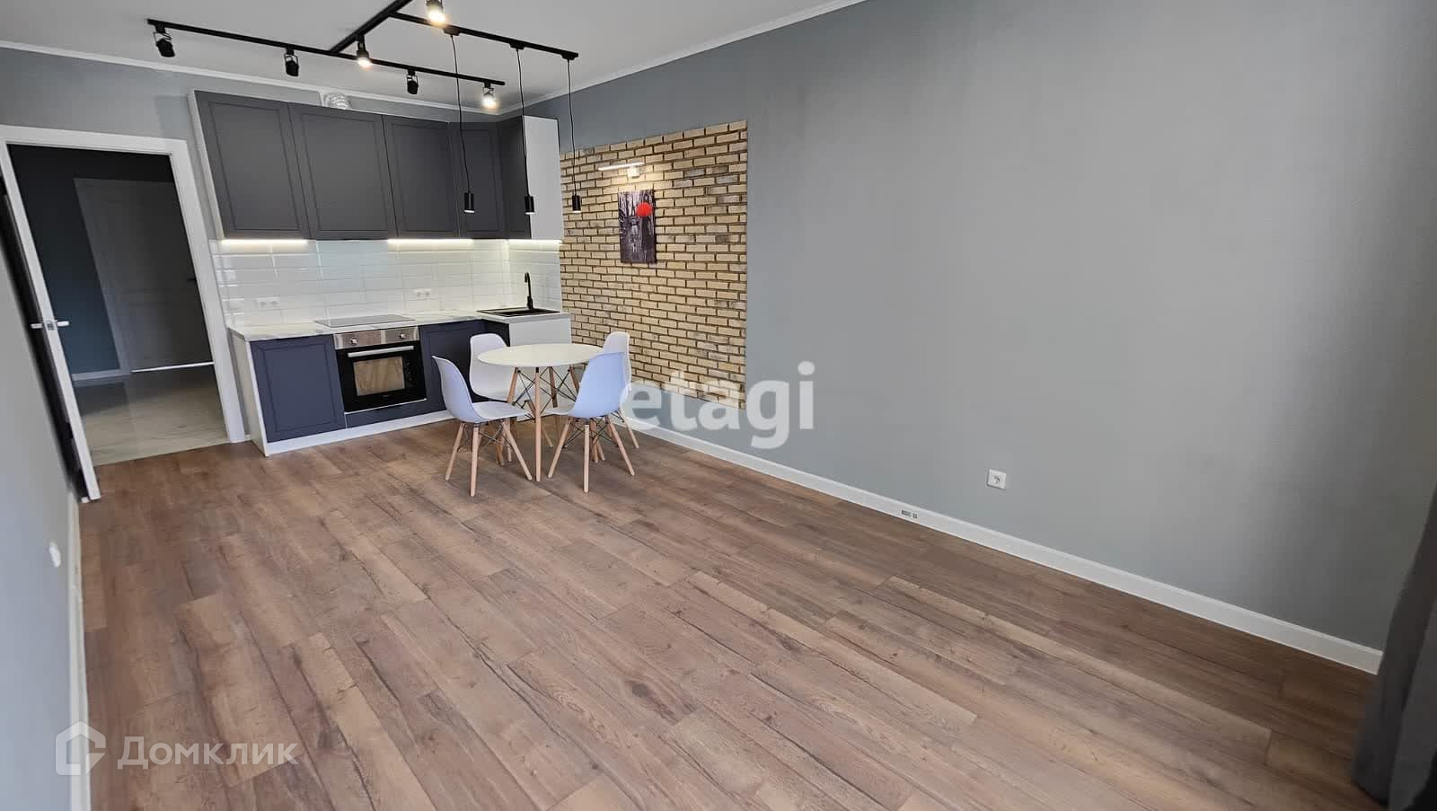 Произведен ремонт, в коридоре на полу современный керамогранит, на кухне и в комнате ламинат 33 класса, установлены высококачественные двери белого цвета, подходящие под стилистику квартиры, стены - обои под покраску- покрашены моющейся краской, потолок выровнен и также покрашен моющейся краской (никакой натяжки!).