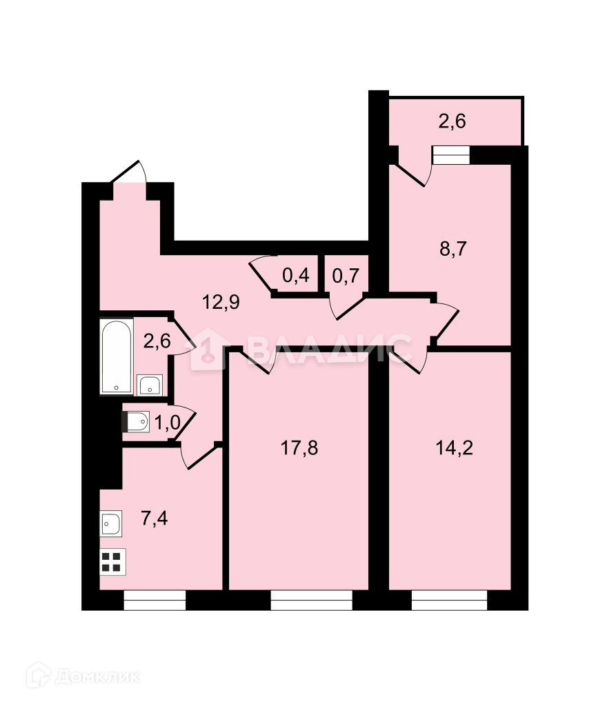 3-комнатная квартира, 66 м2, этаж 7 / 13, на продажу в Санкт-Петербурге, Богатырский проспект, 8