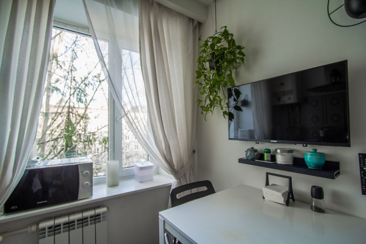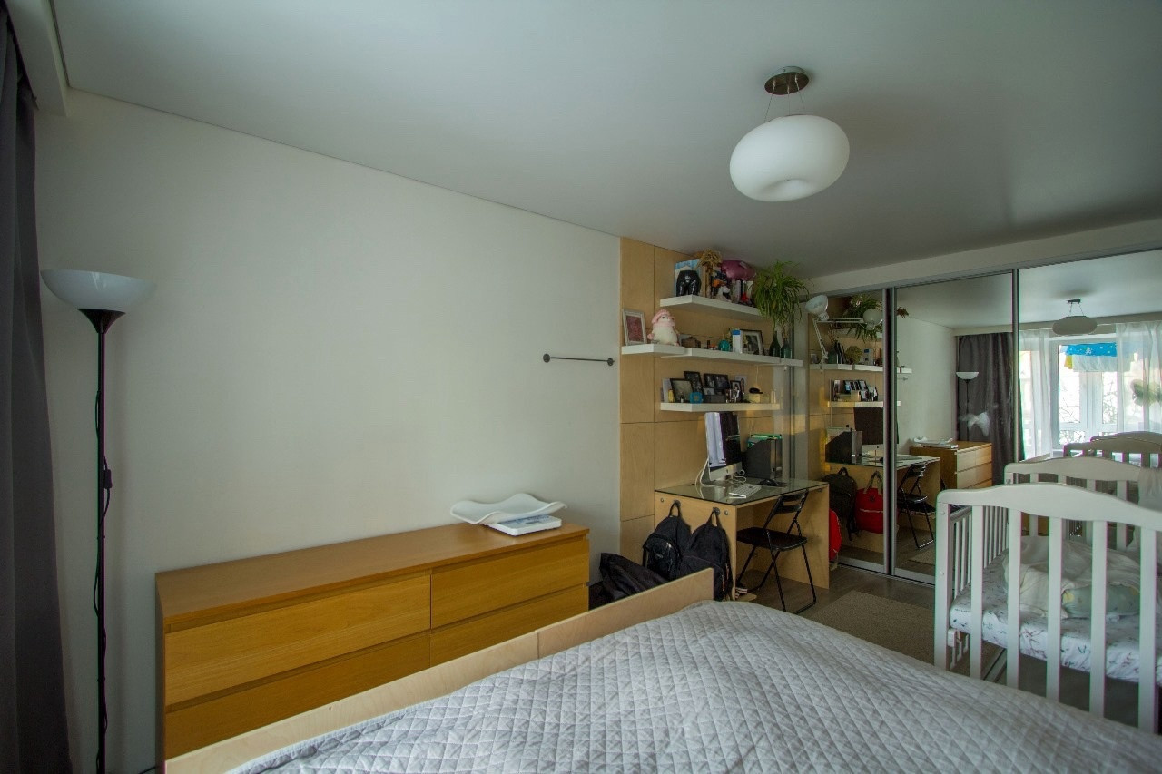 Квартира с хорошим ремонтом, прекрасная эргономика. Собственник – дизайнер, создал комфортное для жизни пространство. Новому собственнику остается кухонный гарнитур, кровать с подъемным механизмом, компьютерный стол, полки, гардеробная.