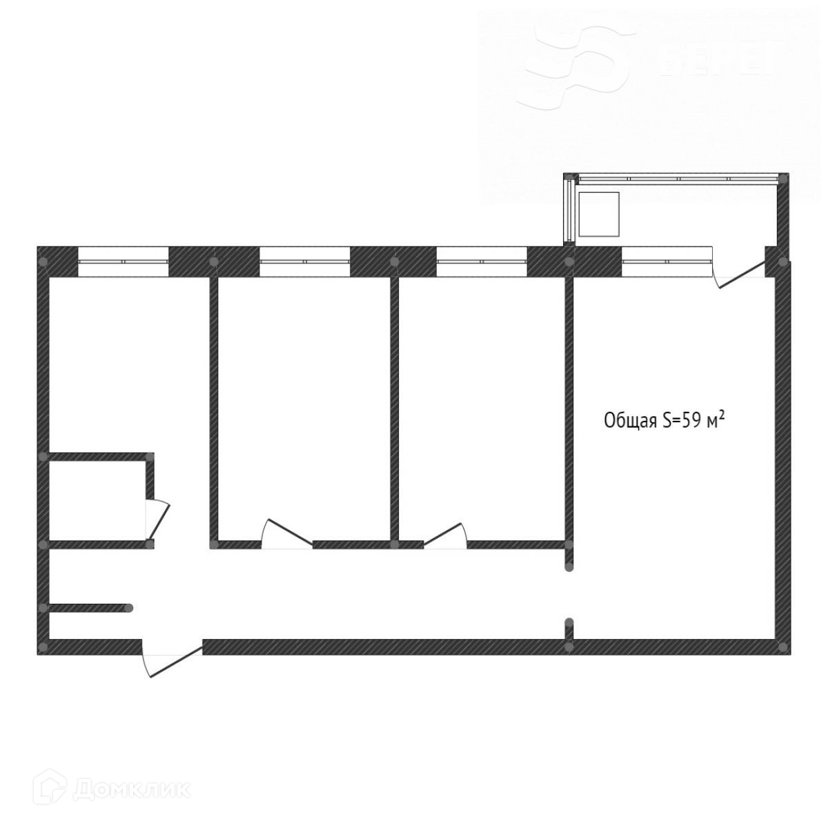 Общая площадь 59 м2
