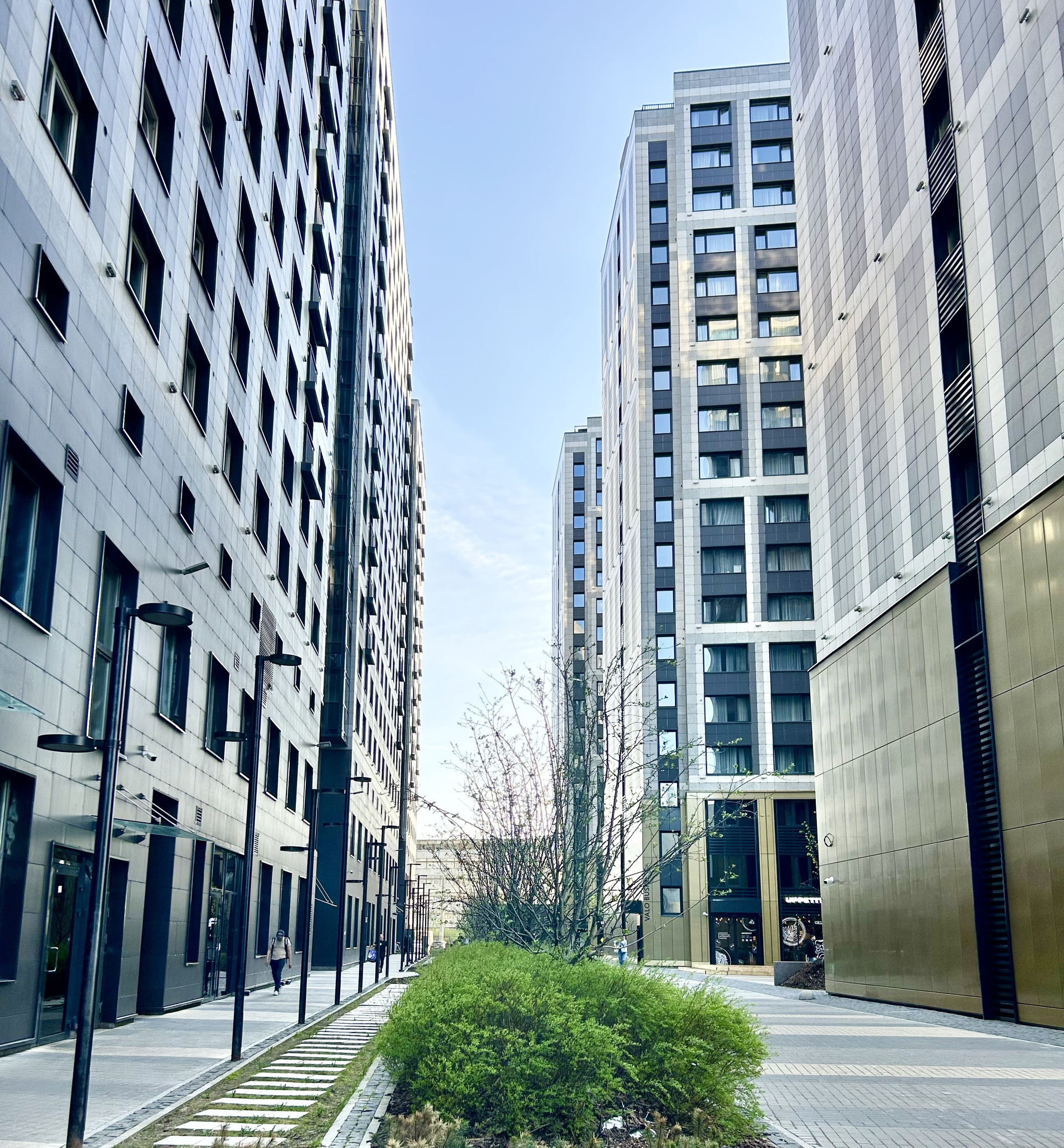 Напротив  комплекса станция метро Бухарестская.