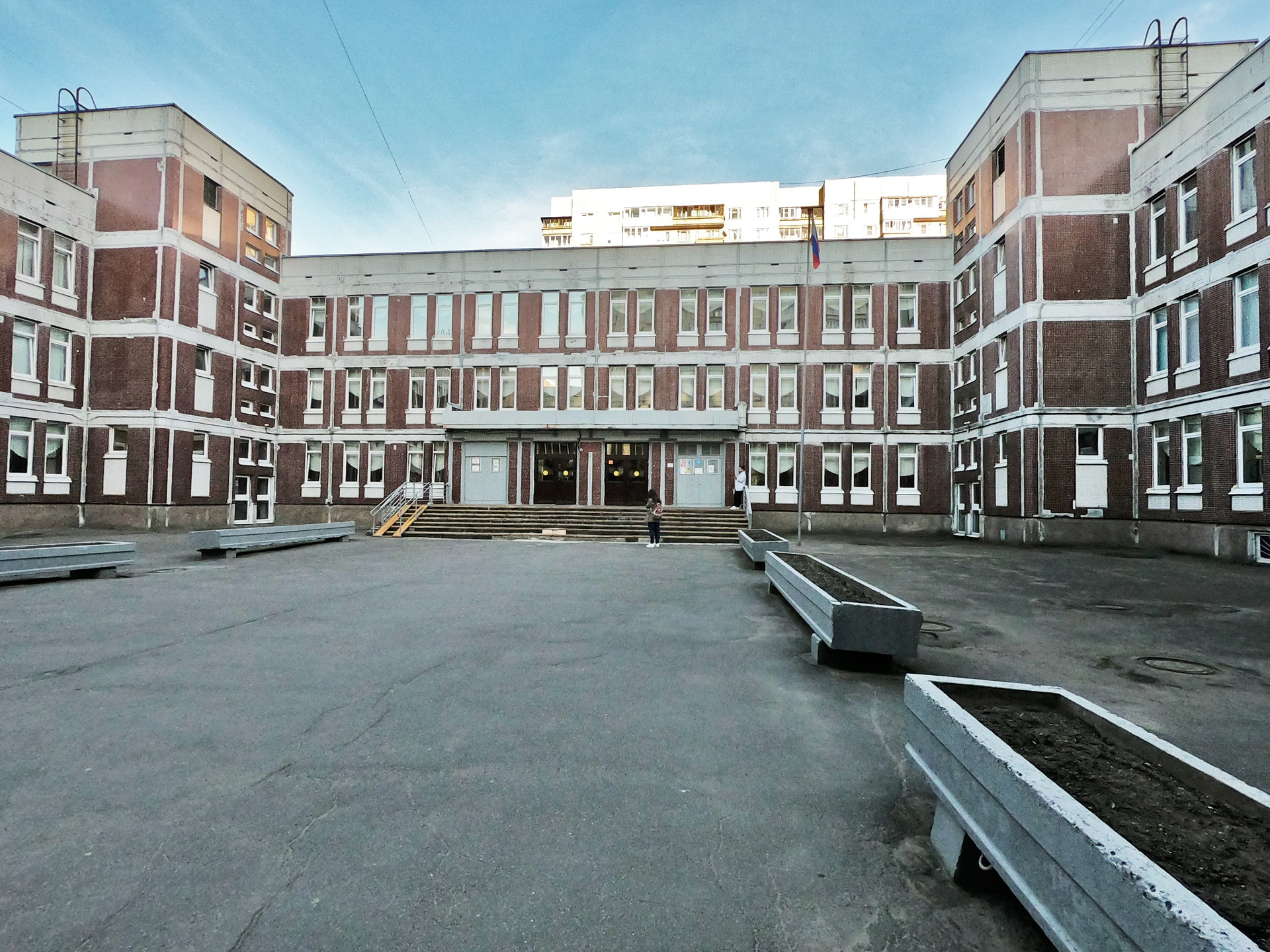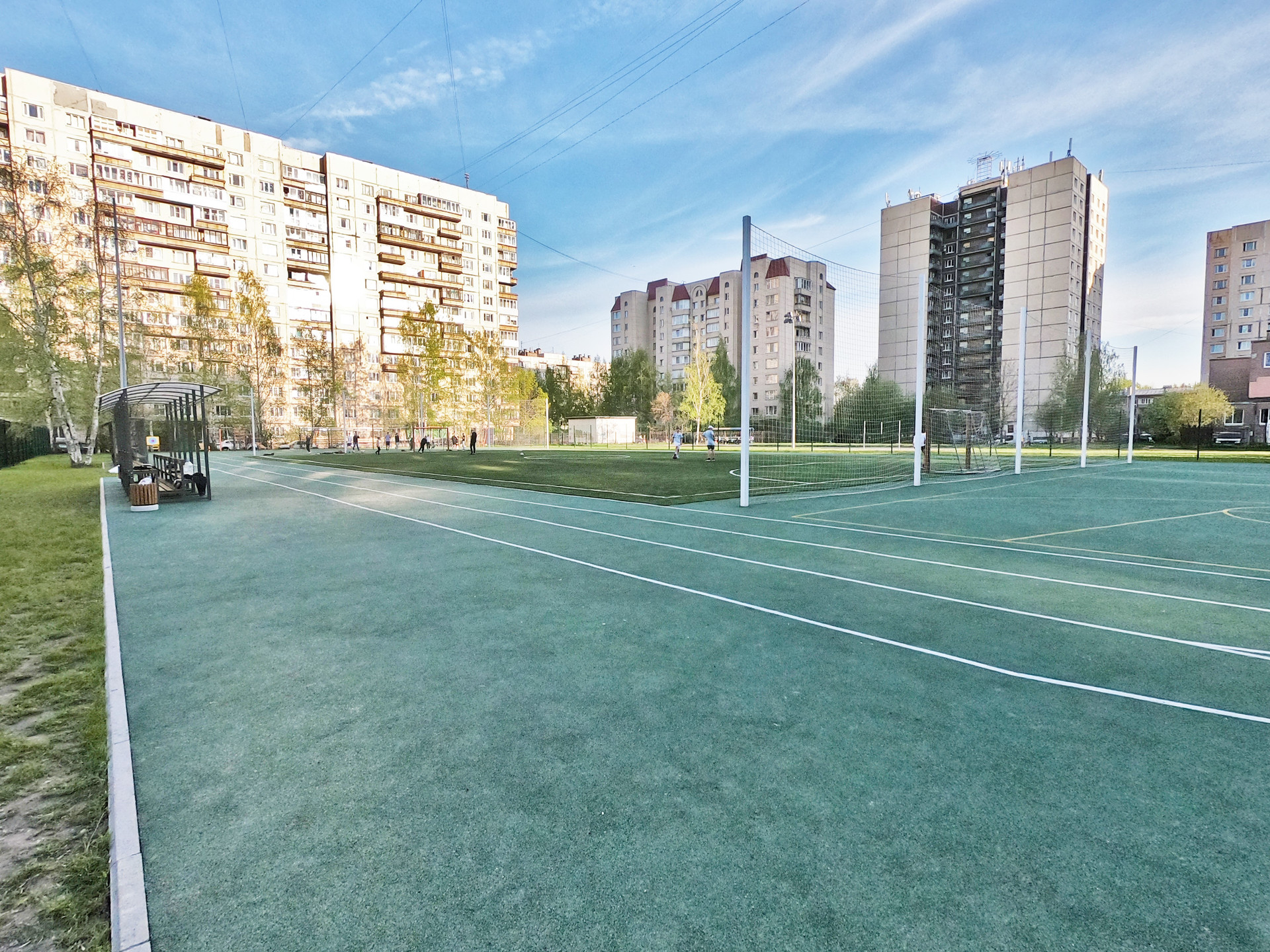 Во дворе футбольное и баскетбольное поле