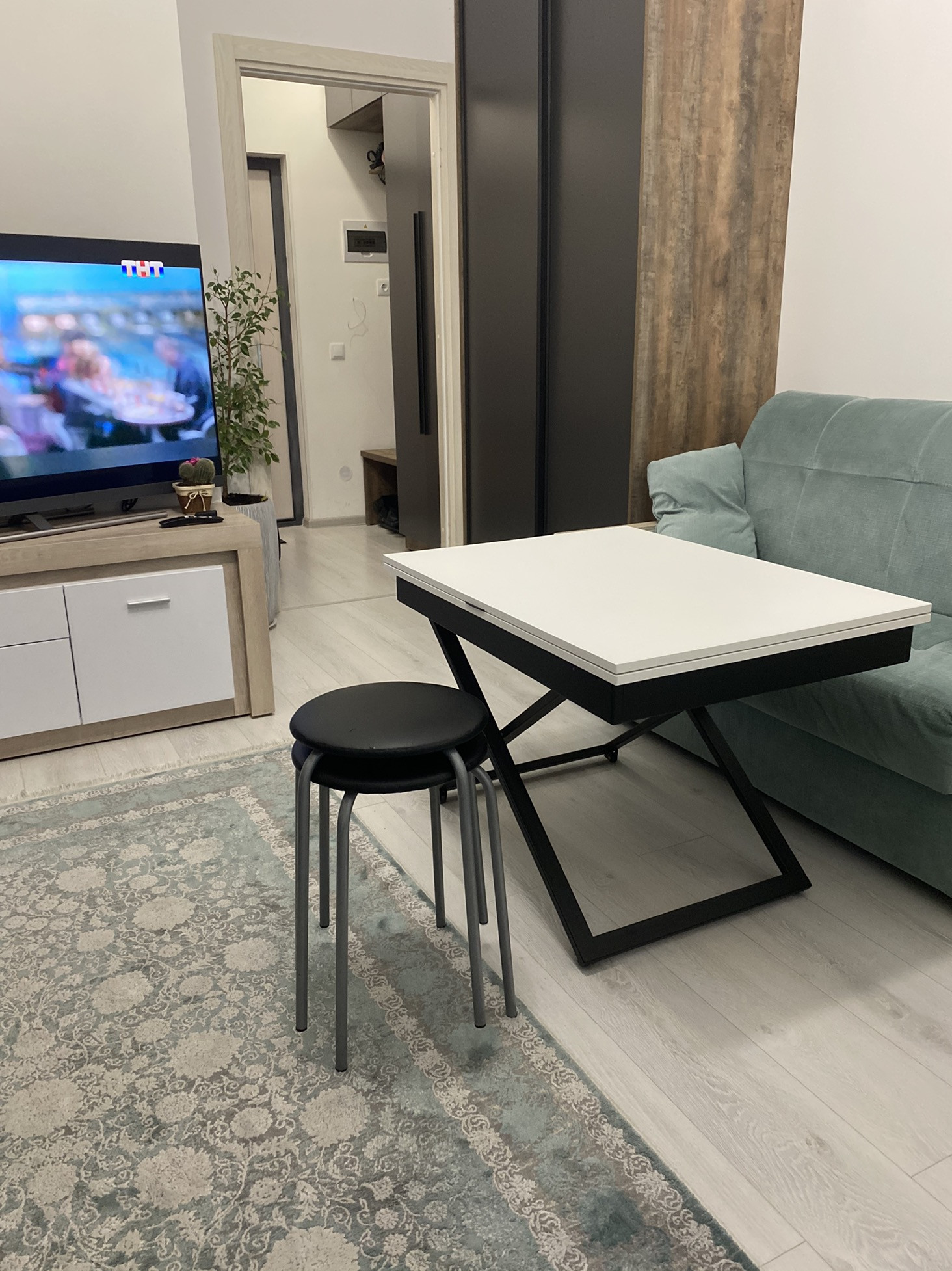 Продаётся большая студия с ремонтом и дизайнерским пакетом мебели. В квартире остаётся всё, вся мебель изготовлена на заказ, в соответствии с параметрами квартиры, вся техника встроенная новая (холодильник, варочная панель, духовка,вытяжка, большая посудомоечная машина, большой телевизор, стиральная машина. В ванной тёплый пол. Квартира готова к заселению, есть абсолютно всё для комфортной жизни!