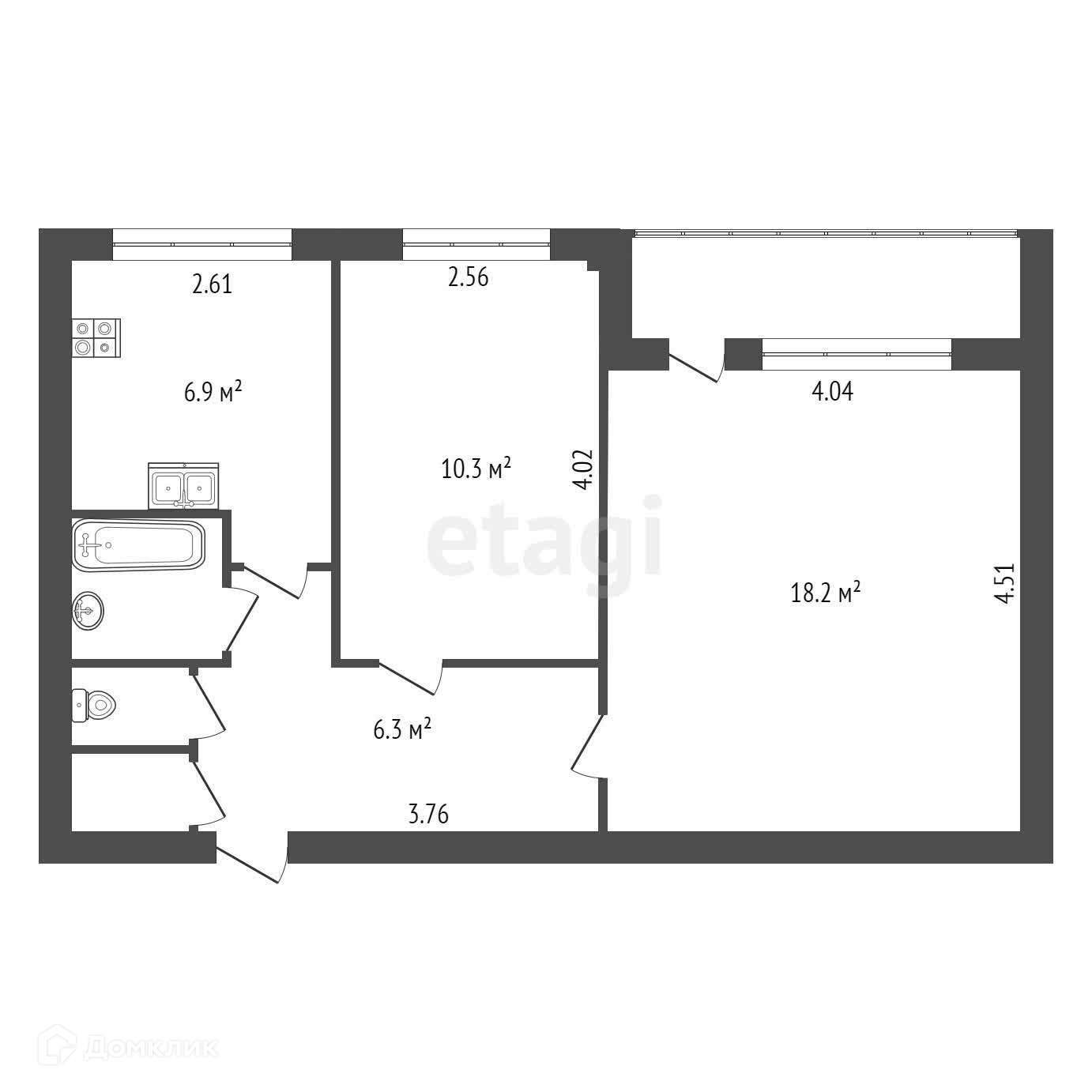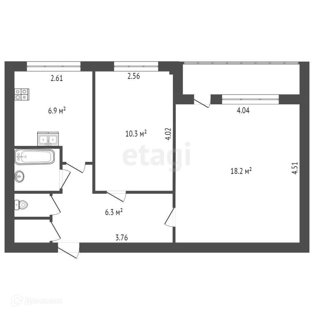 Общая площадь 45.5 м2