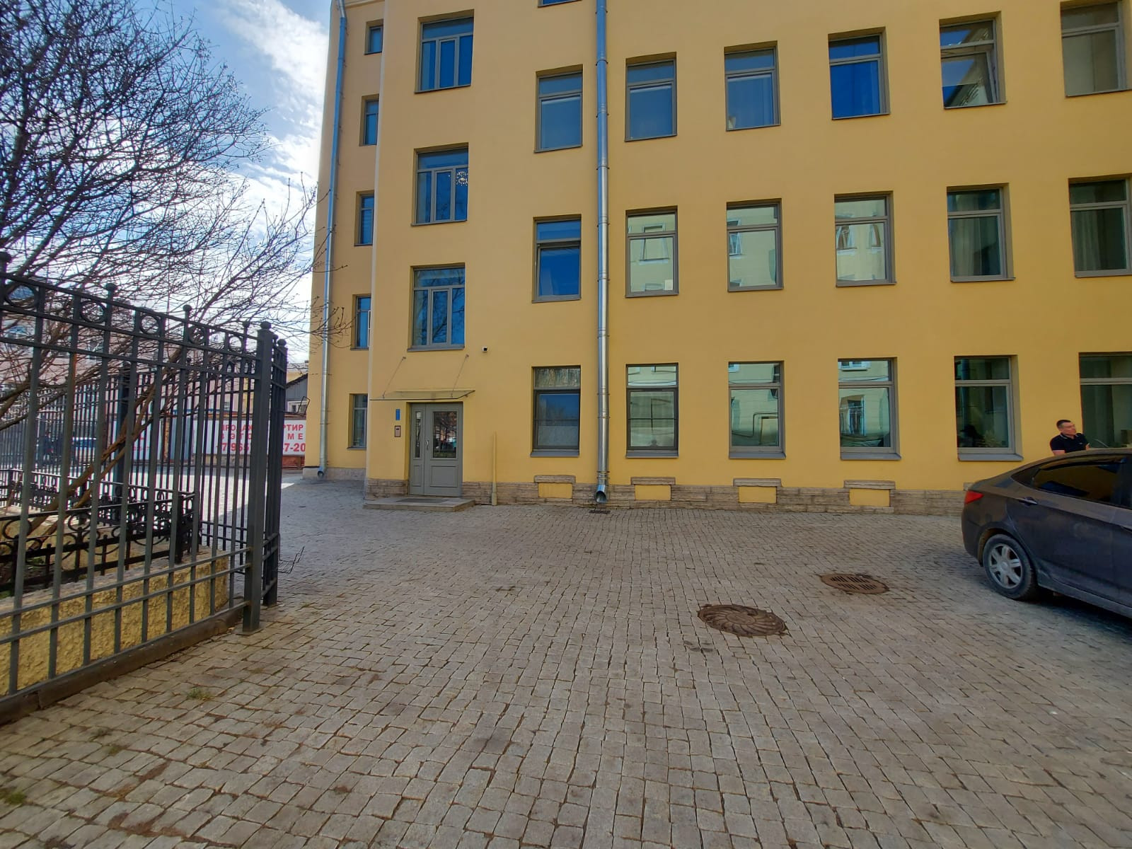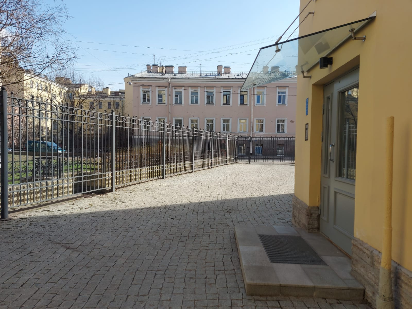 Закрытый двор, красивая чистая парадная.