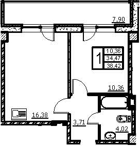 Балкон, лоджия 1 балкон