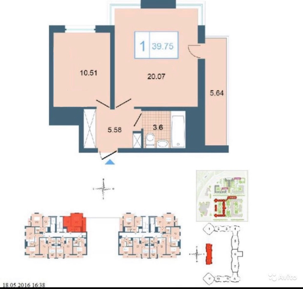 2-комнатная квартира, 40.4 м2, этаж 8 / 8, на продажу в Санкт-Петербурге, Среднерогатская улица, 9