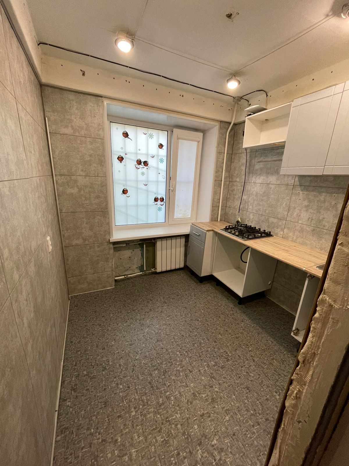 В квартире выполнен ремонт, возможно вам захочется сменить только обои. По всей квартире натяжные потолки и встроенные светильники, что даёт отличный свет тёмными зимними вечерами. В квартире тепло, так как стоят стеклопакеты и первый этаж первый в магистрали отопления. Проводка поменяна по современным стандартам.