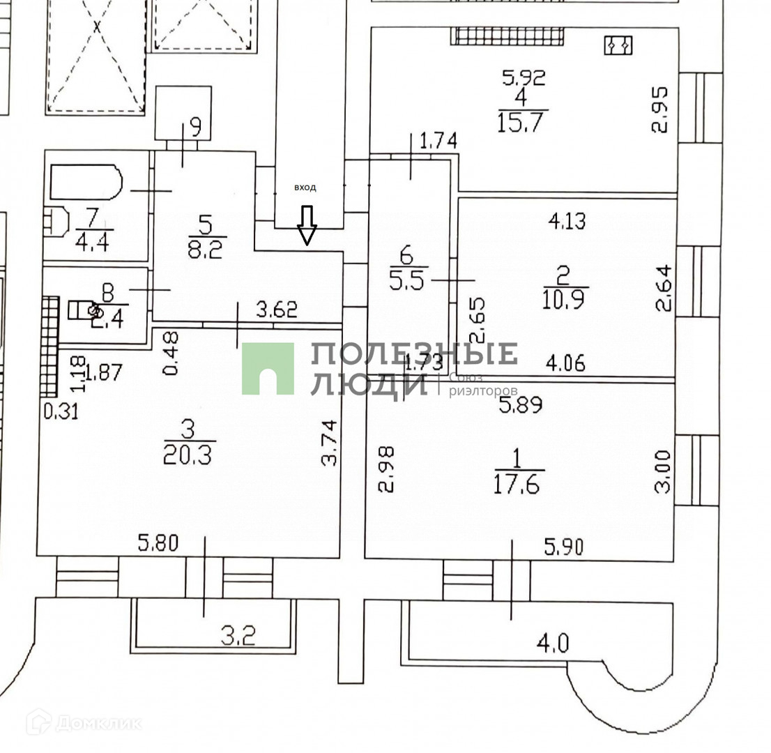 - Комнаты 20.3 + 10.9 + 17.6 м.кв.;