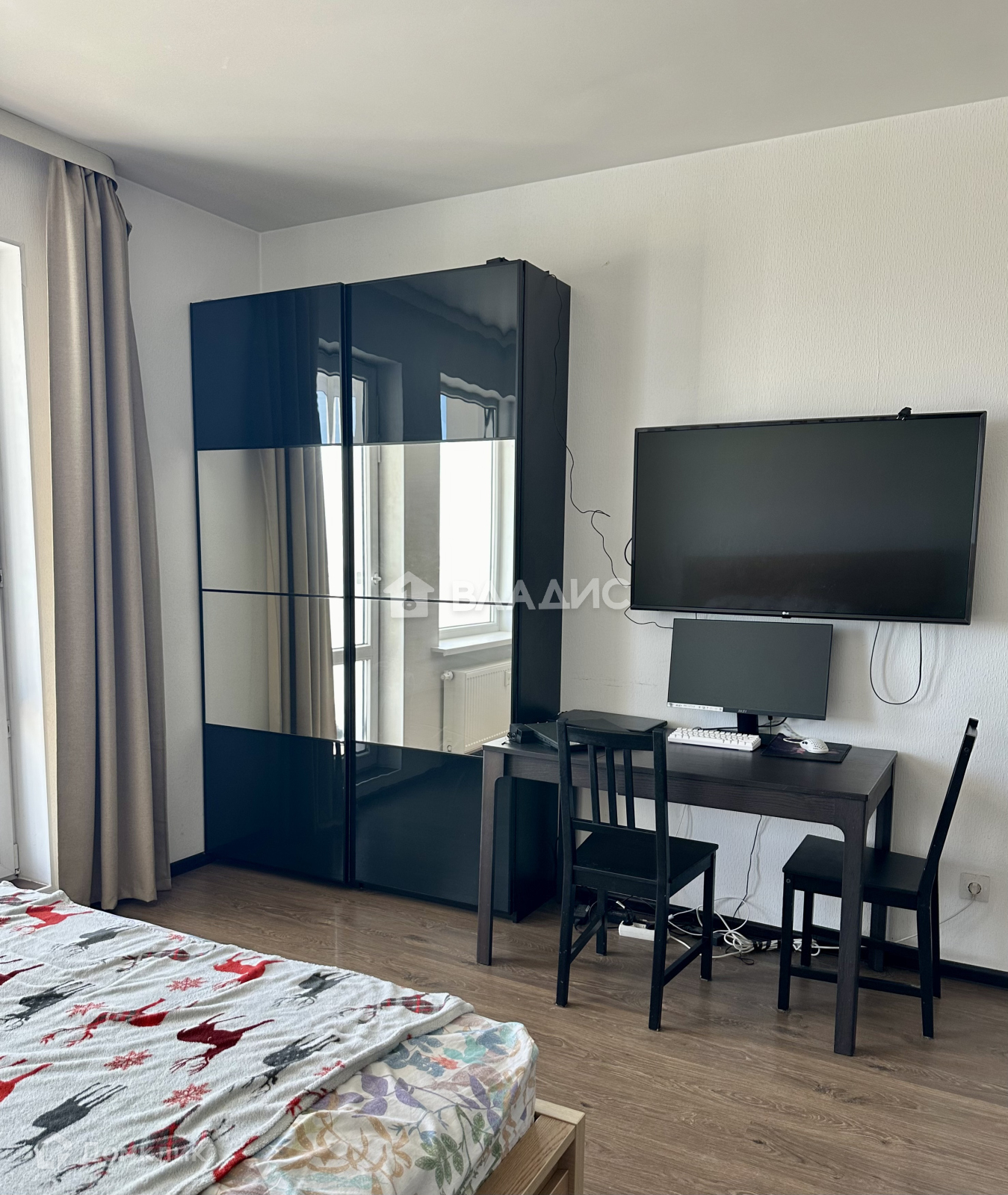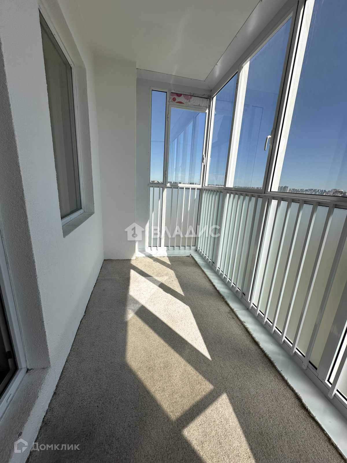 Балкон в этой квартире - это просторная отдельная комната, откуда открывается великолепный вид на город. Квартира видовая - 20 этаж, вокруг дома нет плотной застройки. В теплое время года на балконе можно обустроить место для работы или вечерних посиделок. Уложено ковровое покрытие. Окна выходят на восток, квартира очень светлая, но благодаря балкону не перегревается.