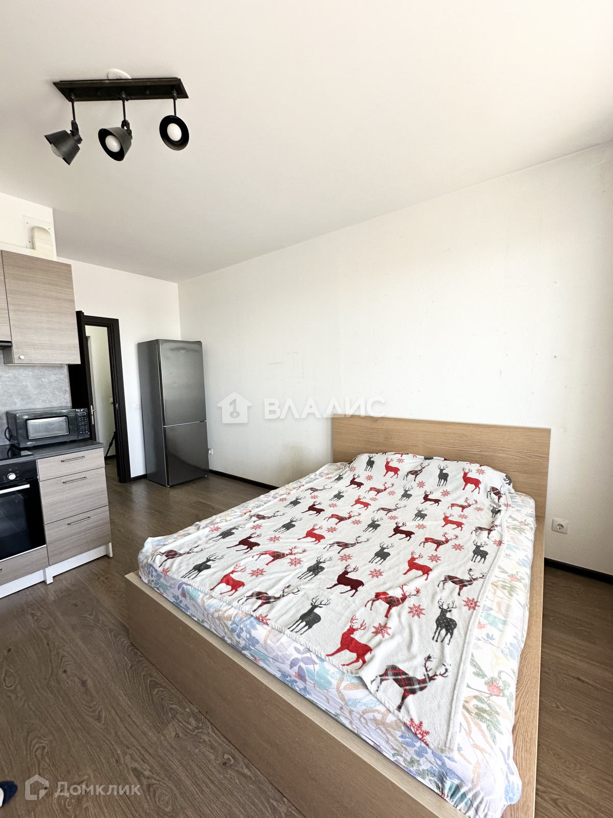 Квартира имеет планировку правильной квадратной формы, не узкая, поделена на зону кухни, спальню с полноценной широкой кроватью, стол с рабочим местом, зона хранения.
