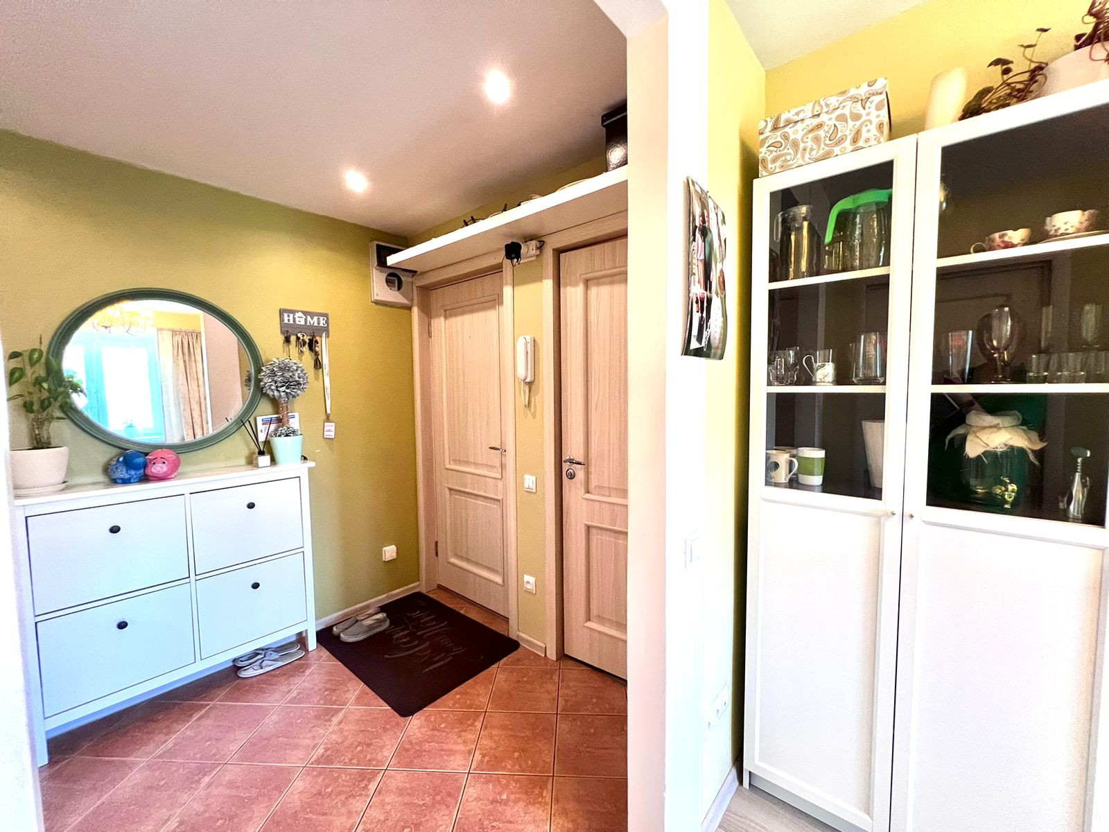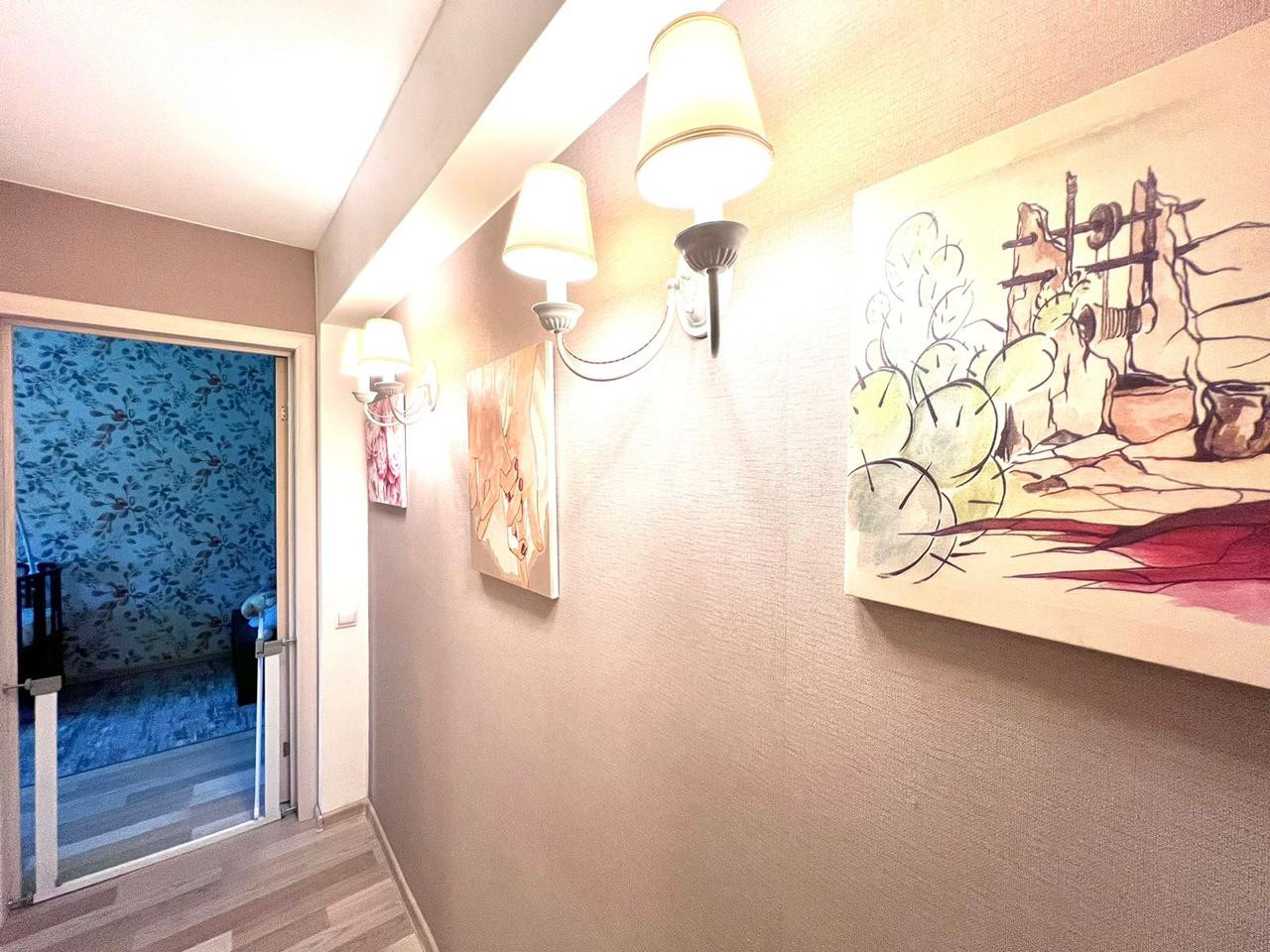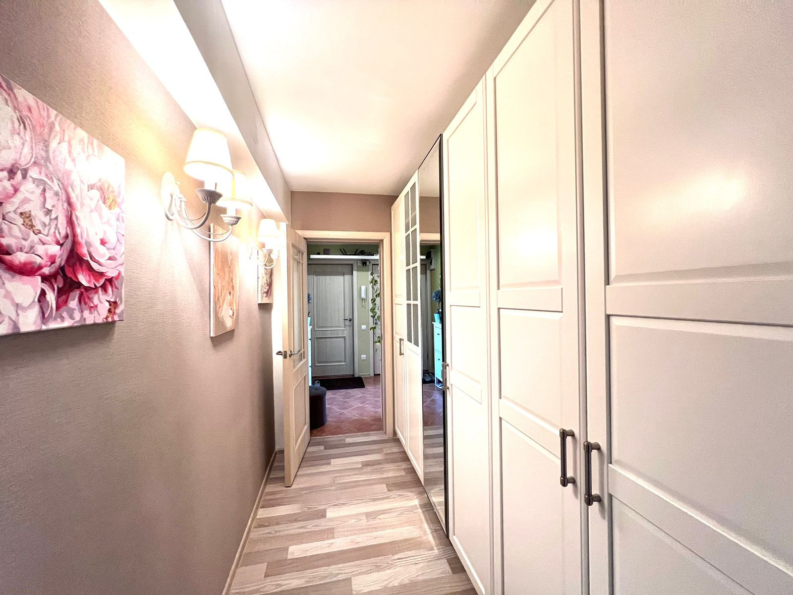 В квартире выполнен свежий ремонт. На кухне и в коридоре под плиткой установлены теплые полы. В комнатах - постелен ламинат. В коридоре установлена вместительная система хранения Икея, которая останется в подарок новому владельцу.