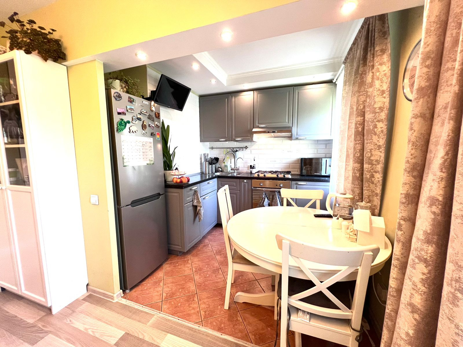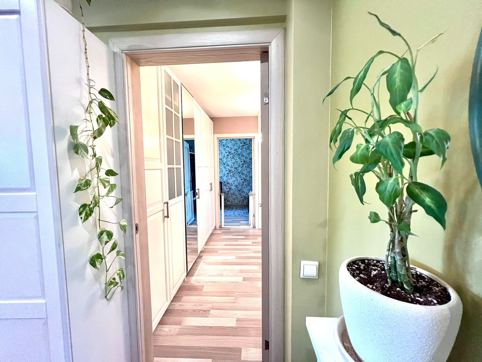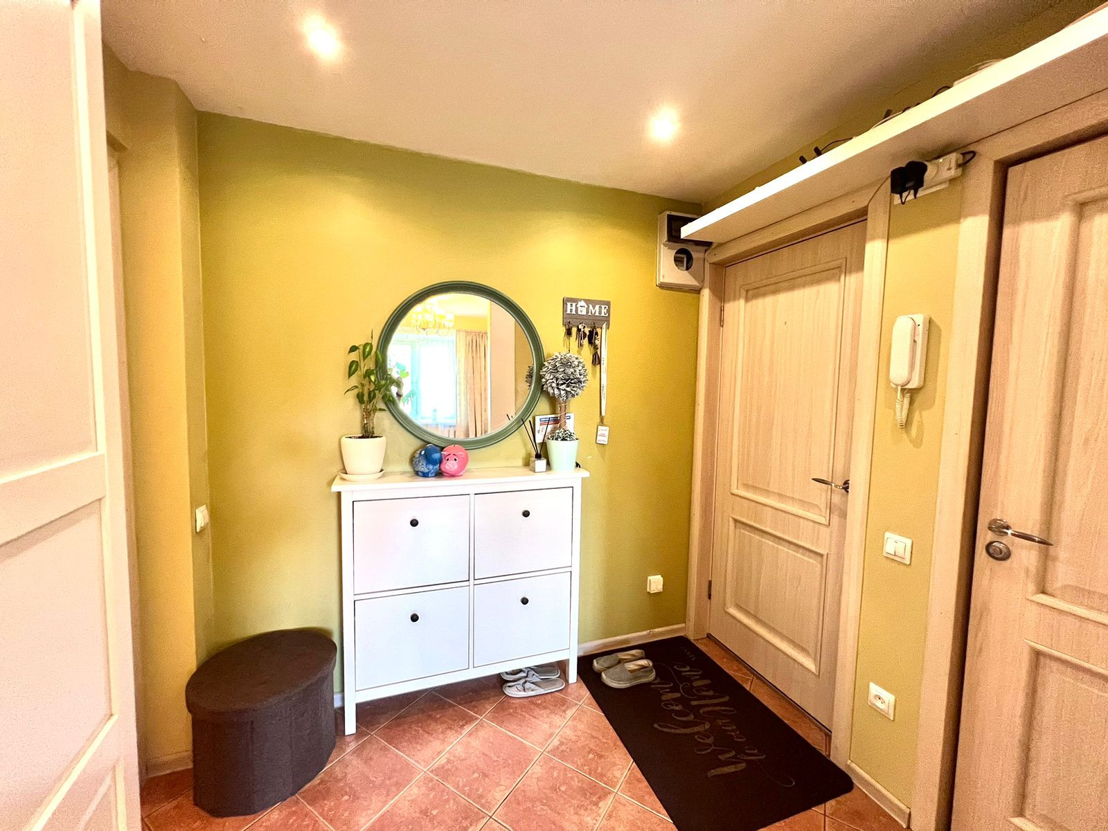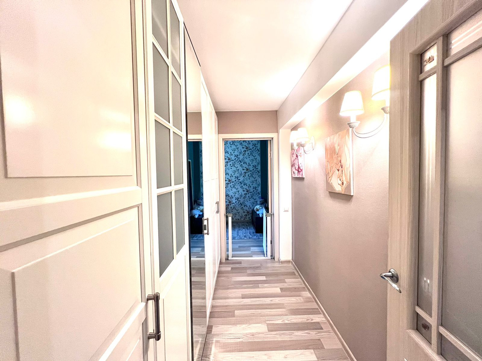 В квартире выполнен свежий ремонт. На кухне и в коридоре под плиткой установлены теплые полы. В комнатах - постелен ламинат. В коридоре установлена вместительная система хранения Икея, которая останется в подарок новому владельцу.