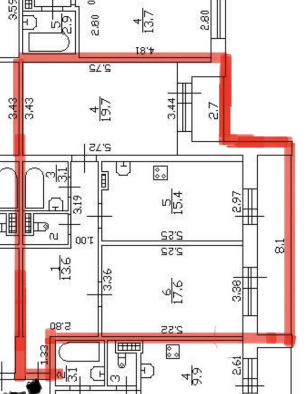 Площадь кухни 15.5 м2
