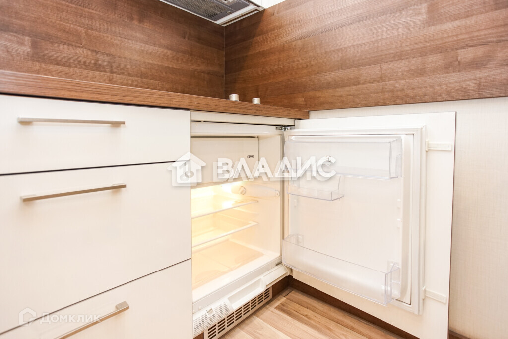 Эта студия отличается наличием холодильника, вытяжкой, стиральной машиной.