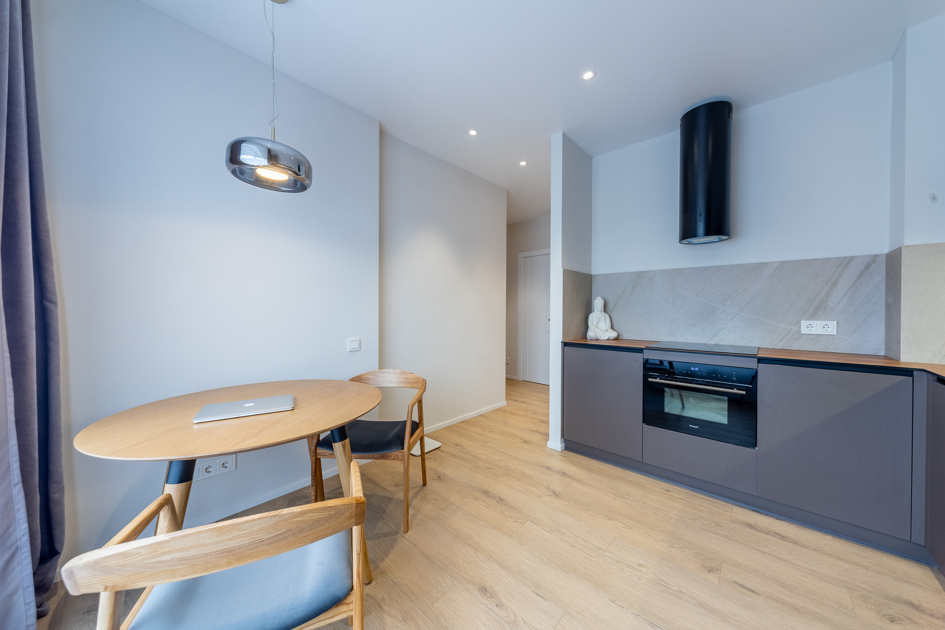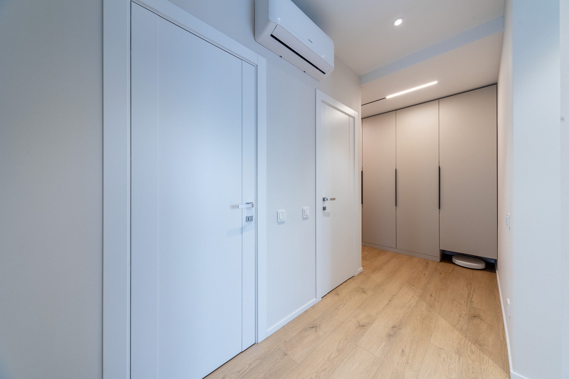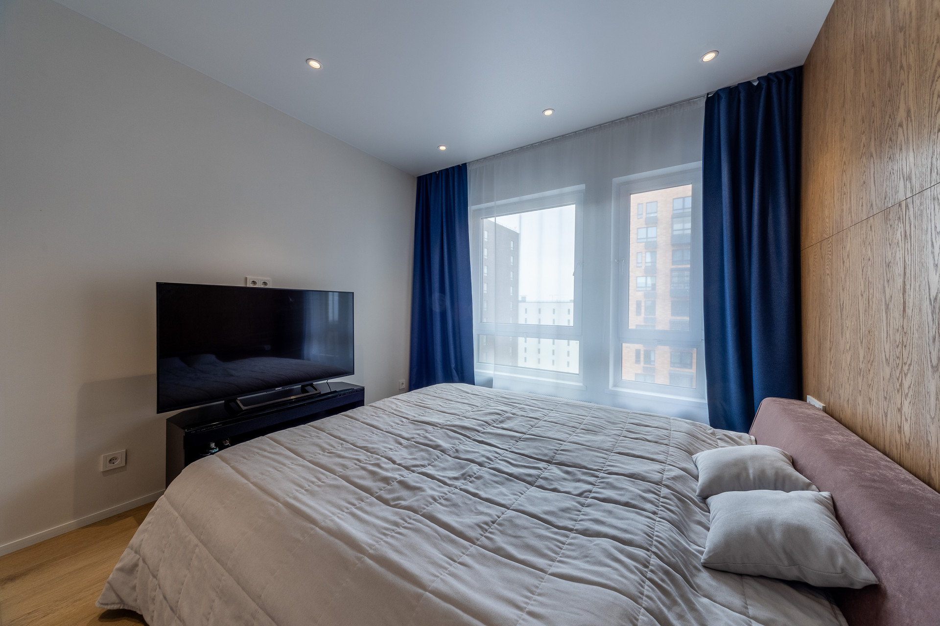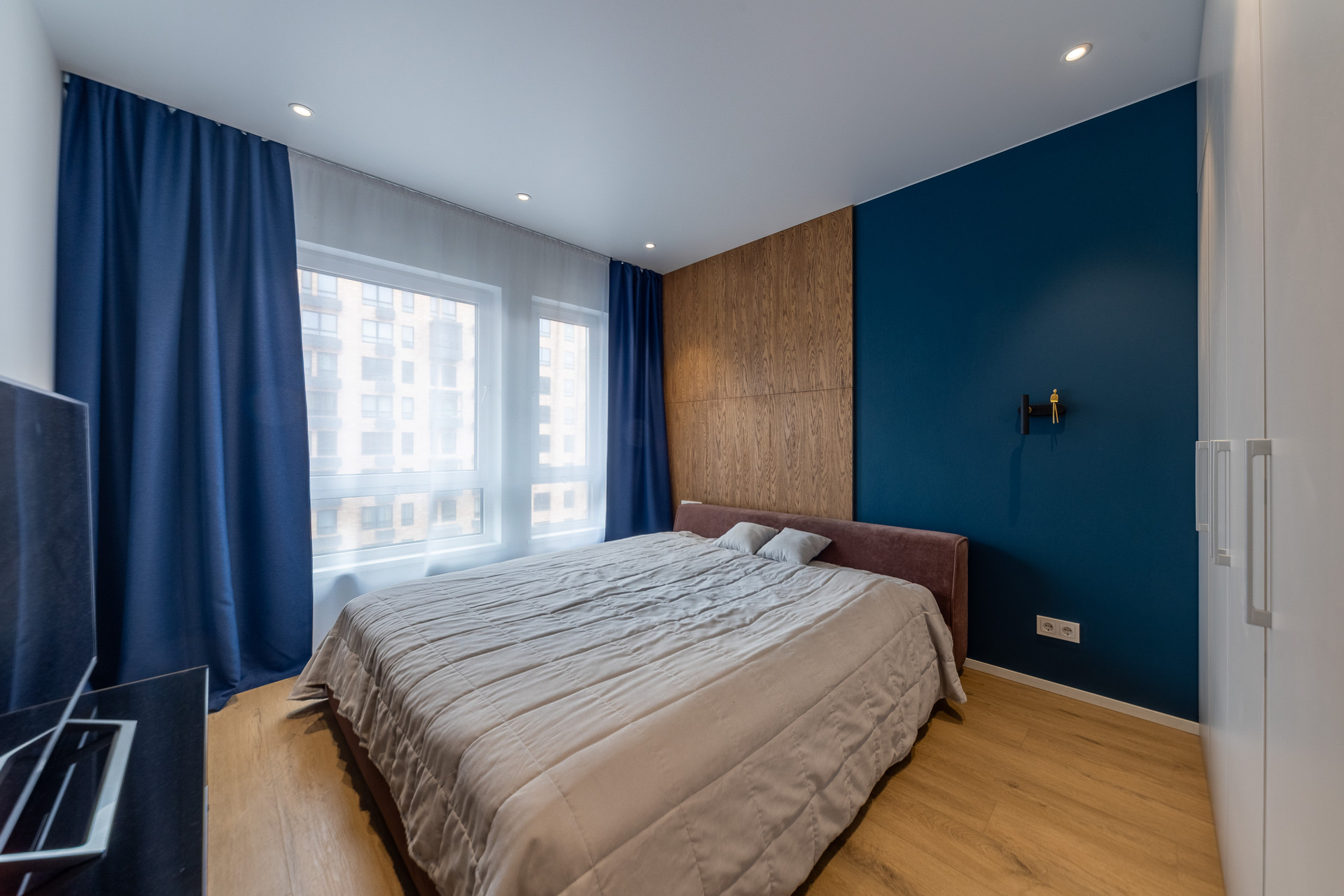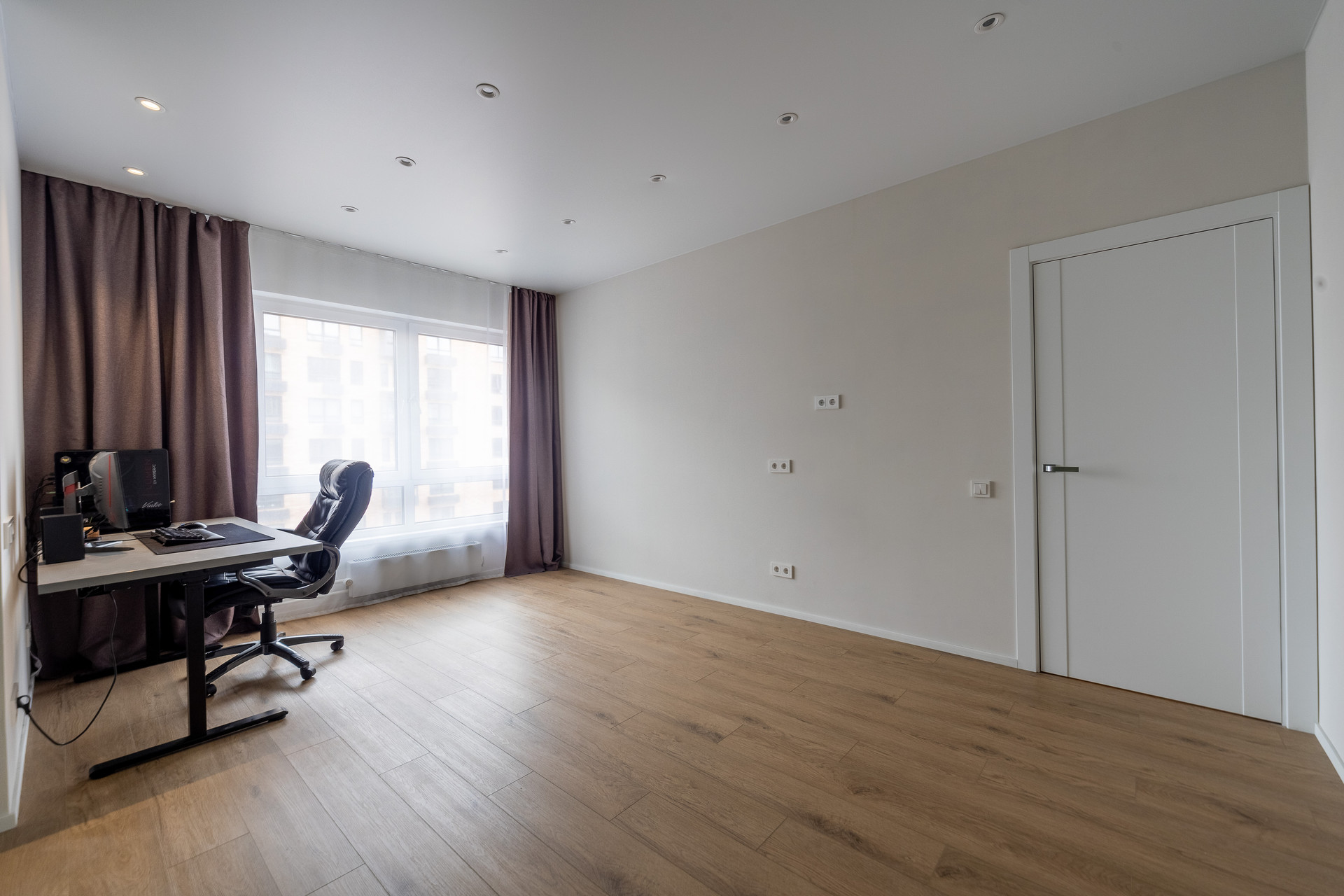 В квартире выполнен дизайнерский ремонт в приятных светлых тонах. Отделка от застройщика полностью удалена, так как впечатление от нее мягко говоря оставляет желать лучшего :).