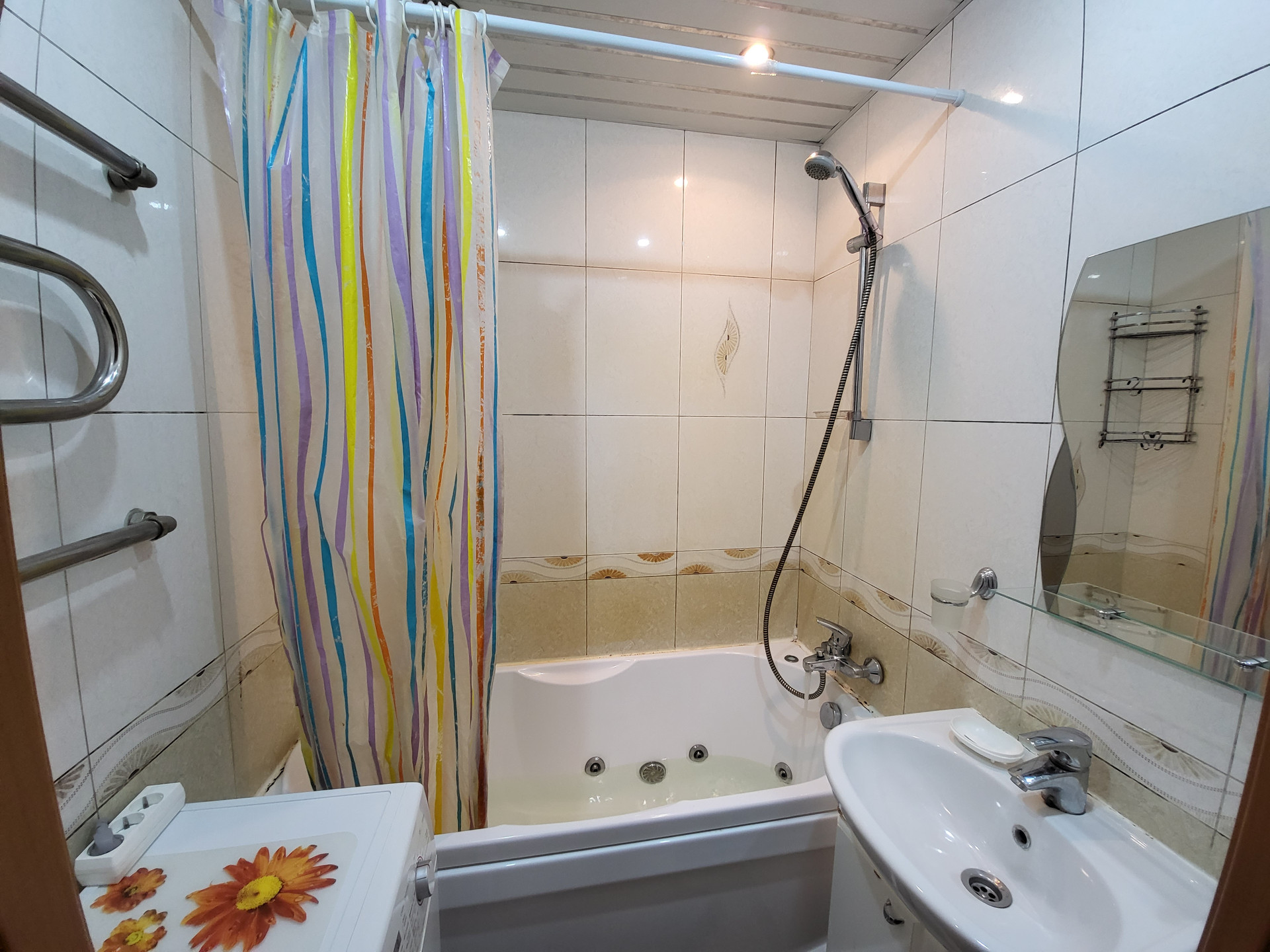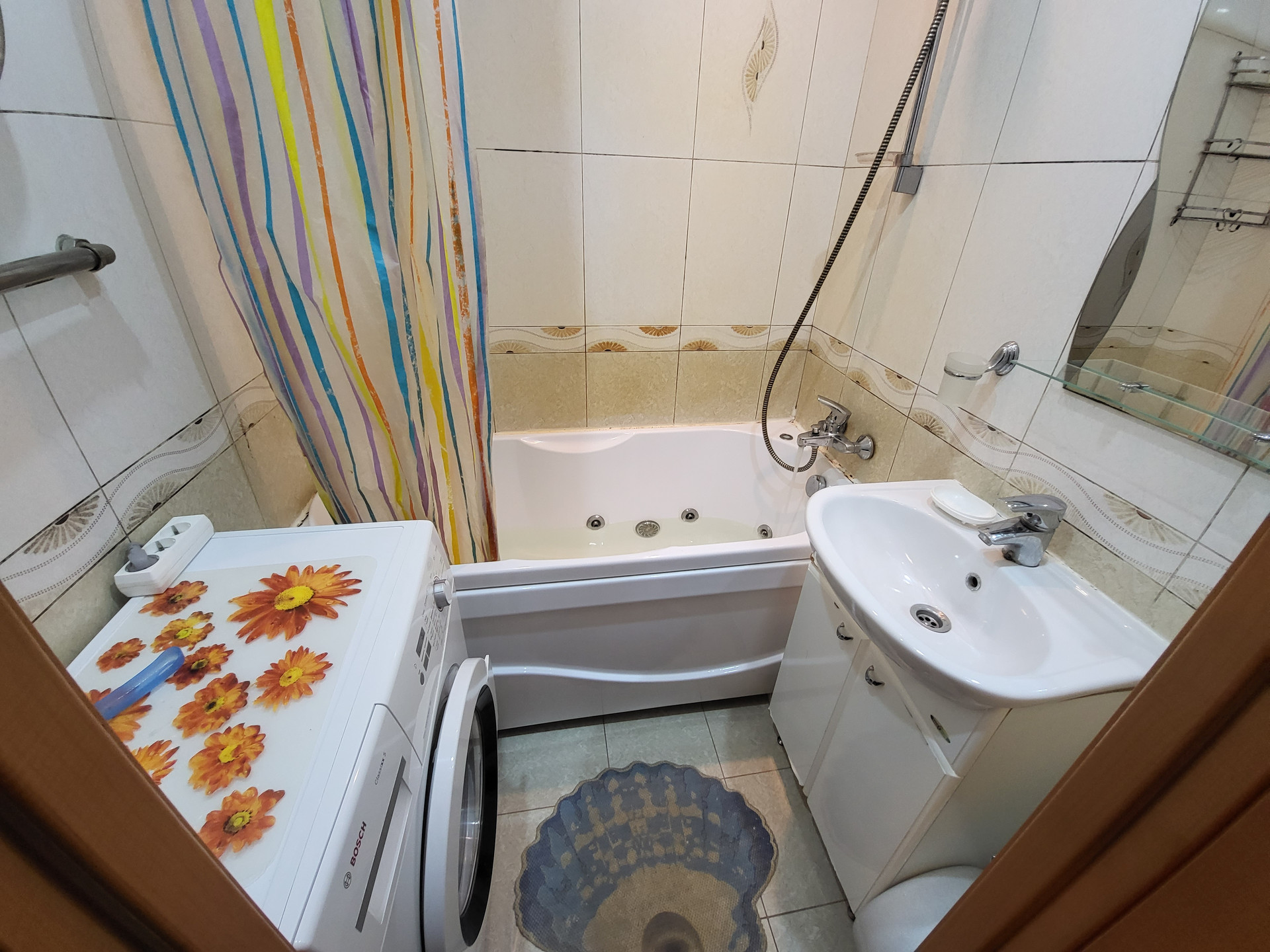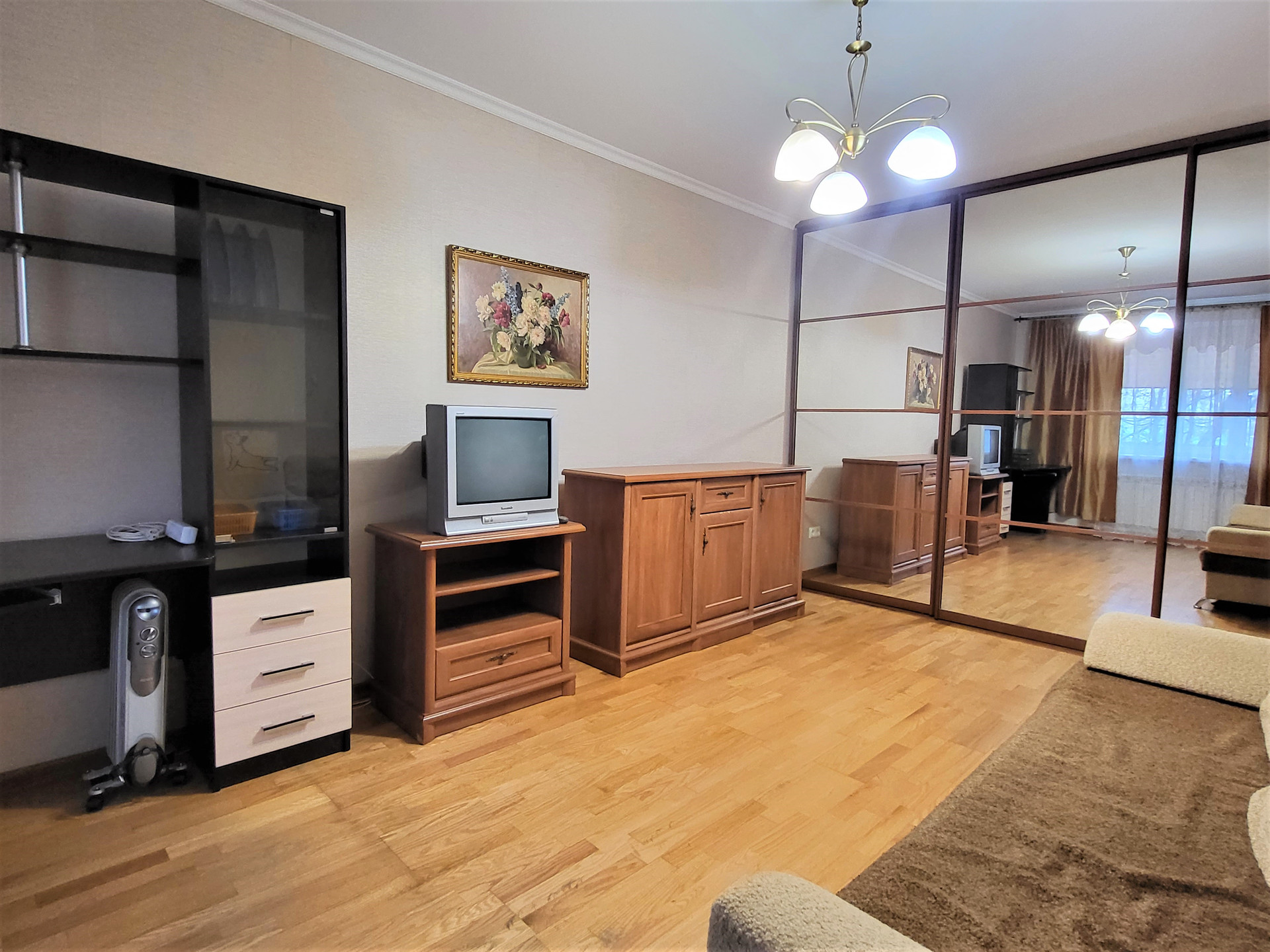 Квартира комфортной планировки, cвeтлая, окна выходят в тихий зеленый двор. Oбщая площадь 33,5 кв.м, кoмнaта прямоугольной формы 18 кв.м., с зеркальным шкафом во всю стену, кухня 8,1 кв.м. со встроенным гарнитуром и техникой, газ, санузел раздельный в кaфеле, ванна джакузи, в прихожей и на кухне теплые полы, кафель. Состояние квартиры хорошее, окна стеклопакеты, пол в комнате-паркетная доска, легко восстанавливается, красивые двери. Высокий первый этаж, без балкона.
