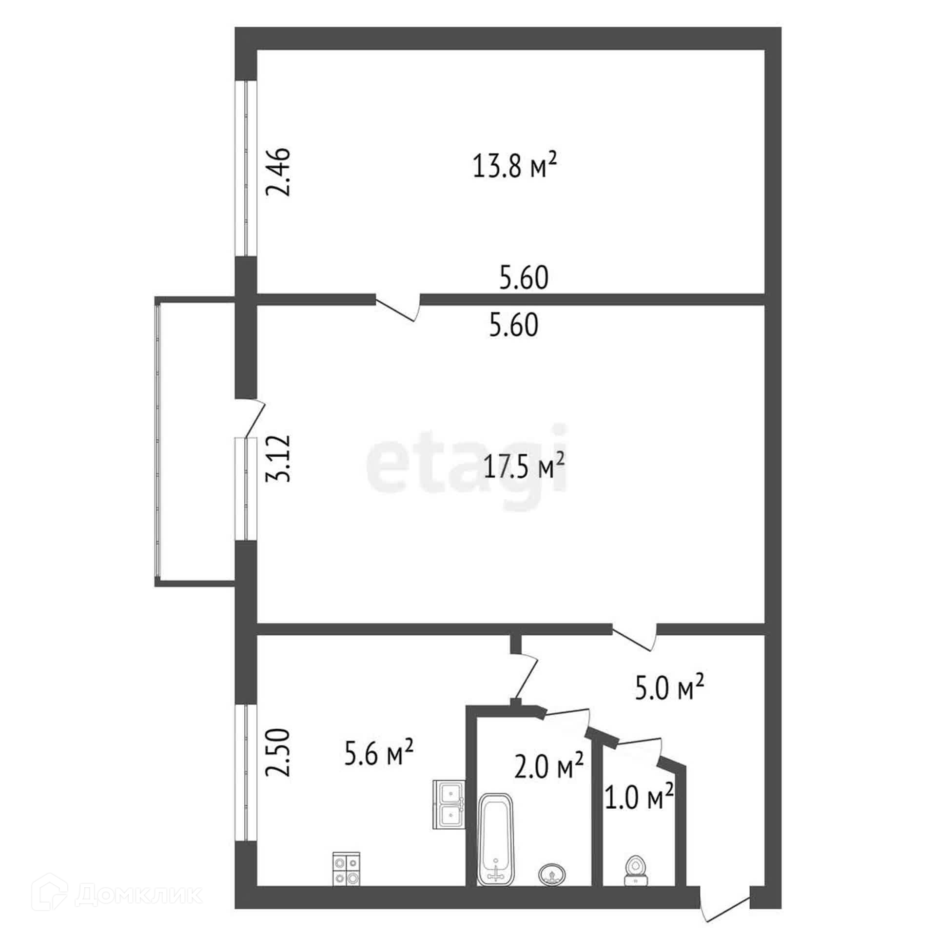 Жилая площадь 31.3 м2