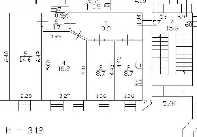 3-комнатная квартира, 60.1 м2, этаж 3 / 7, на продажу в Санкт-Петербурге, Чкаловский проспект, 52