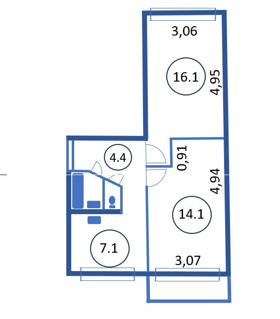 Санузел 1 раздельный