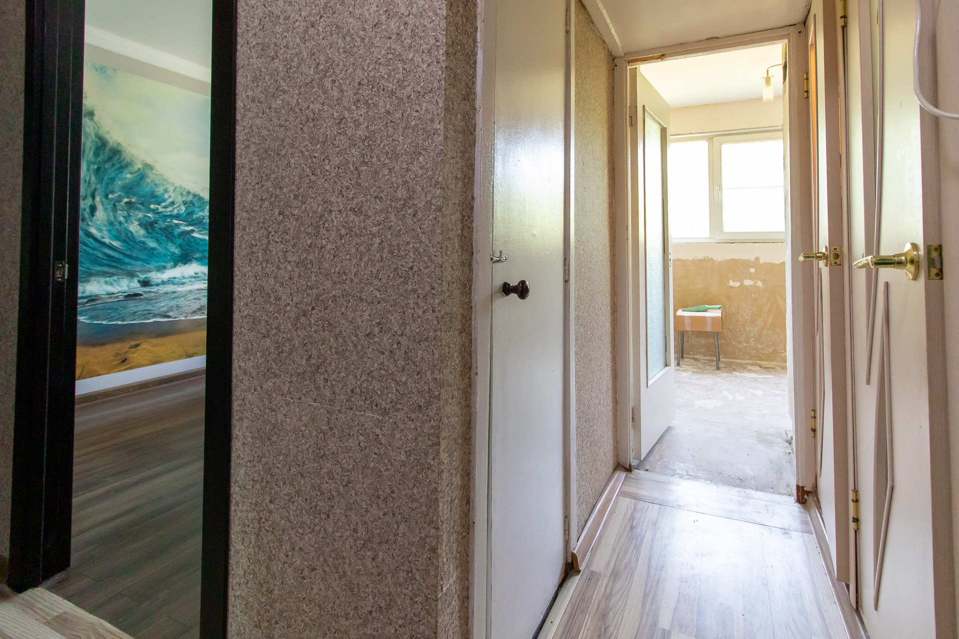 В квартире сделан частичный ремонт, нужно доделать кухню и санузлы.