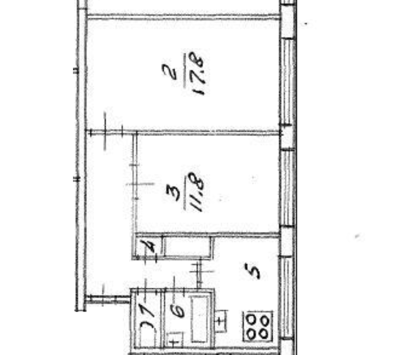 * две комнаты площадью 17,8 м² и 11,8 м²; комнаты раздельные.
