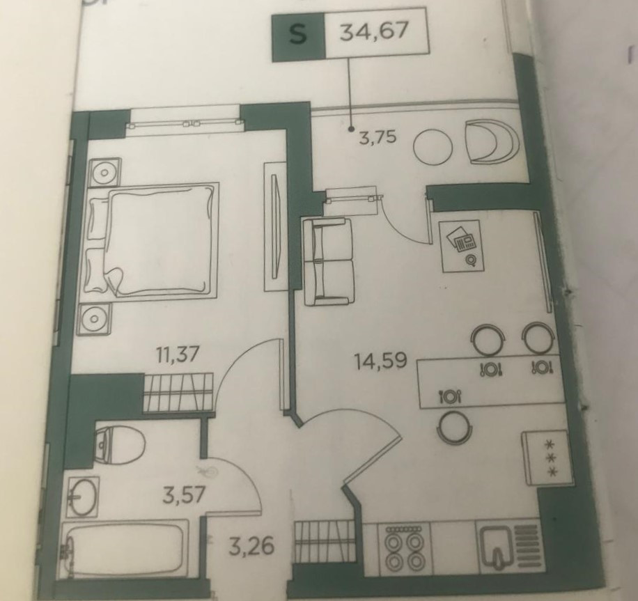 Жилая площадь 11.37 м2