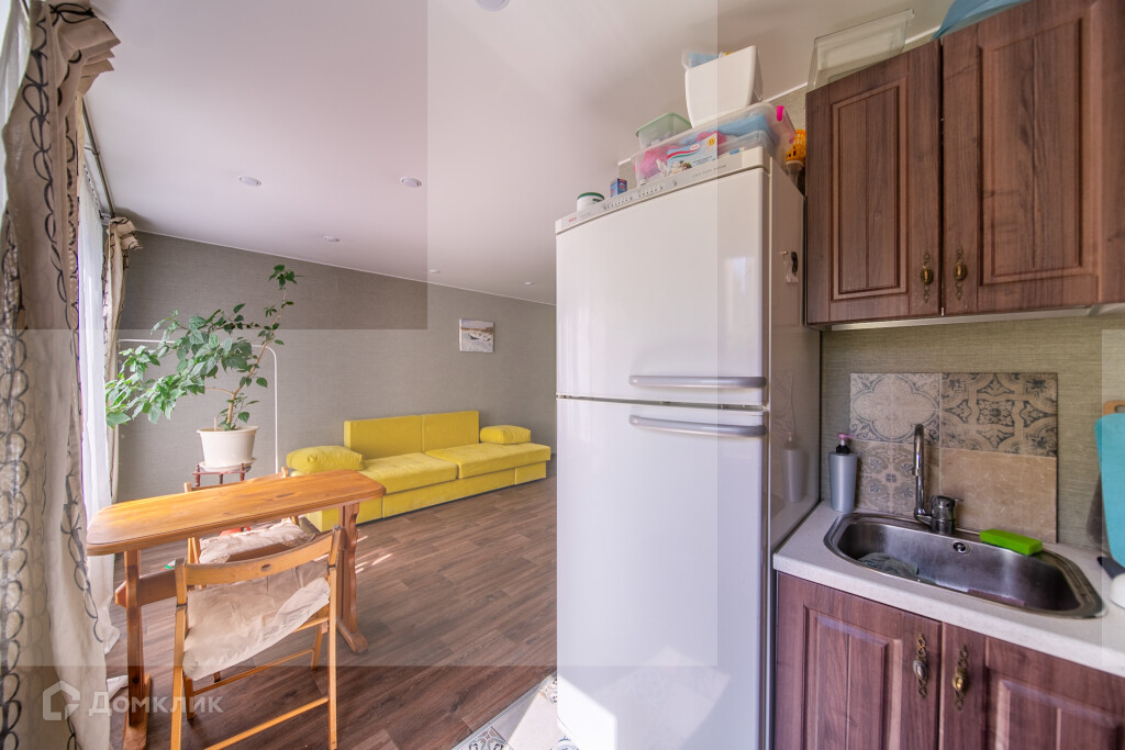 - Кухня-гостиная 16,4 м² удобной формы с замечательным видом на уютный зелёный двор.