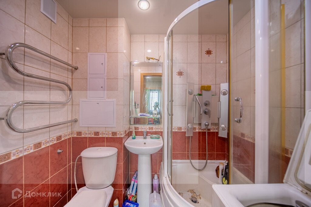 - Санузел совмещенный просторный и есть место для стиральной машины.