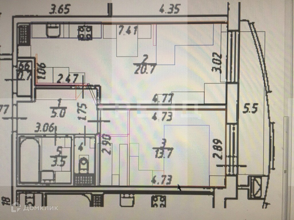 Общая площадь 44 м2