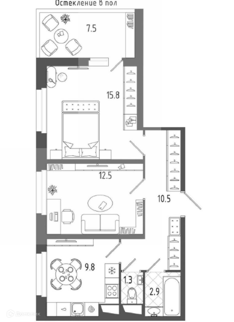 Жилая площадь 28.3 м2