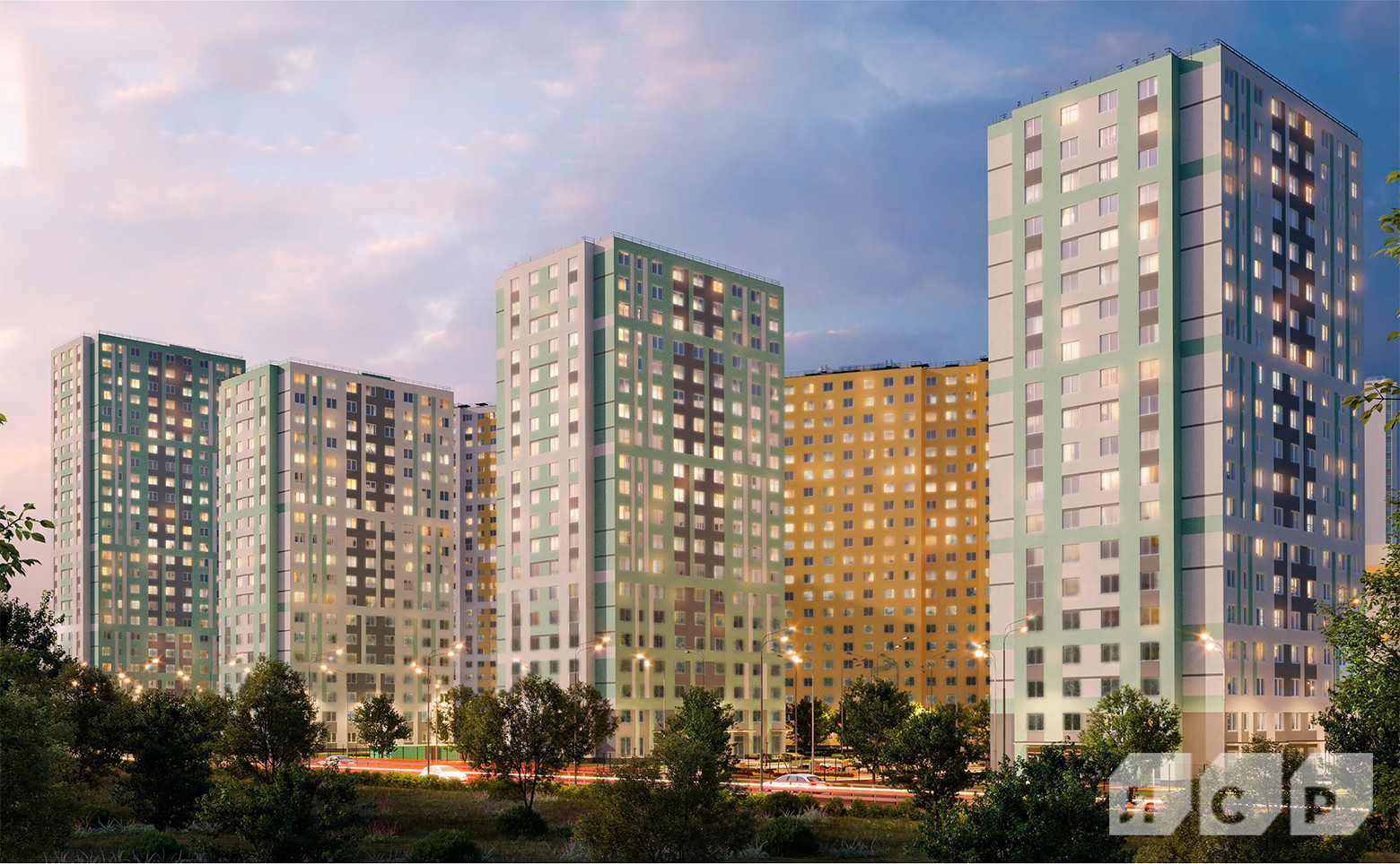 Территория комплекса благоустроена по принципу «безбарьерное пространство». Двор закрыт от машин. Проект включает в себя два детских сада, школу, медицинские и спортивные объекты, а также магазины на первых этажах. Для автовладельцев предусмотрены наземные паркинги и гостевые автопарковки с зарядными станциями для электромобилей. На придомовой территории выполнен ландшафтный дизайн и проведено озеленение. Во дворах находятся детские и спортивные площадки, пешеходные дорожки и места для отдыха.