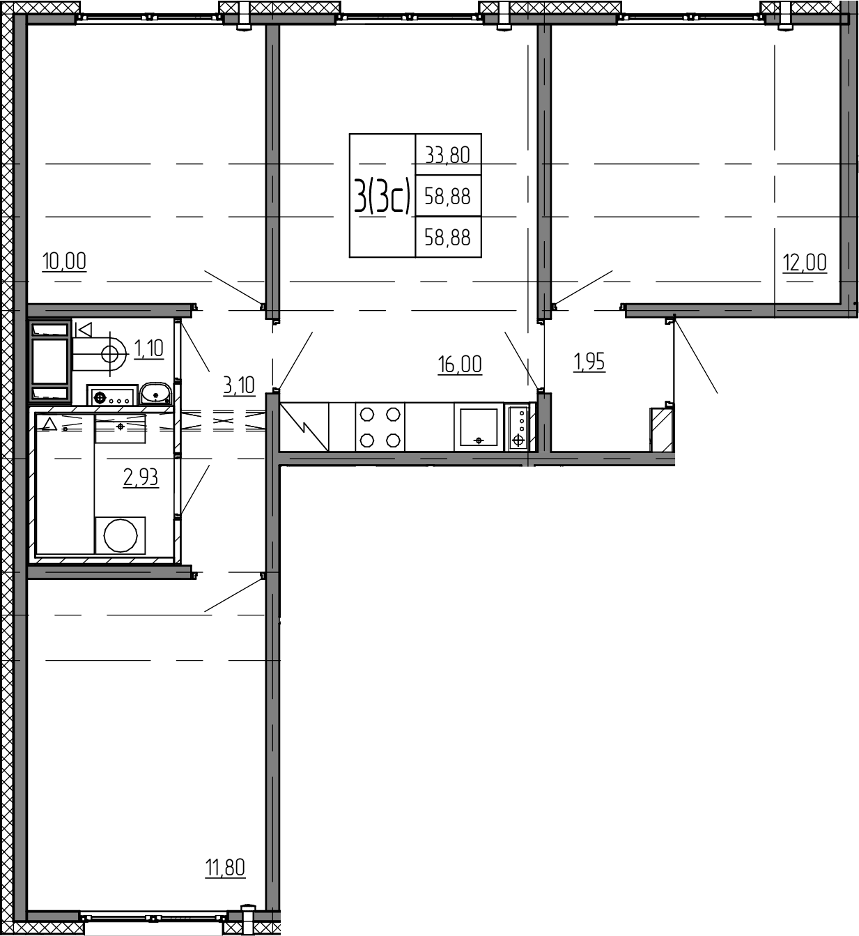 Общая площадь 58.88 м2