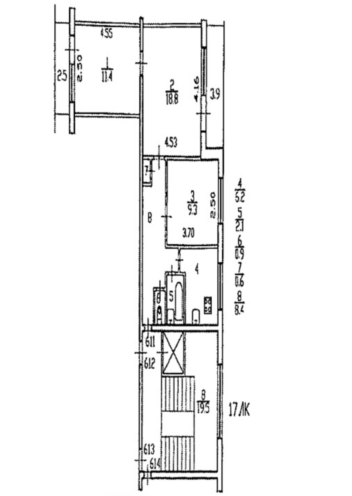 Площадь кухни 5.2 м2