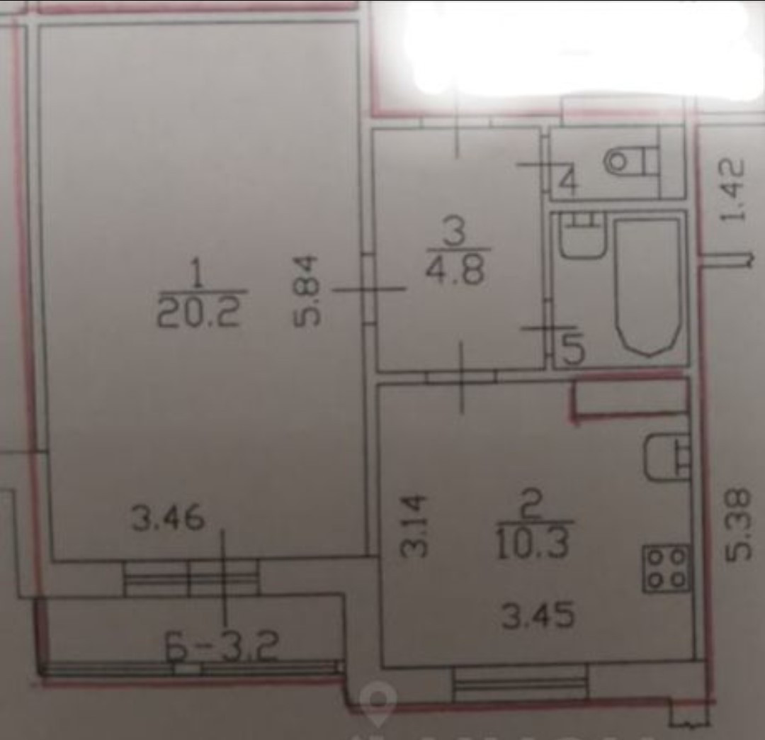 Общая площадь 42.1 м2