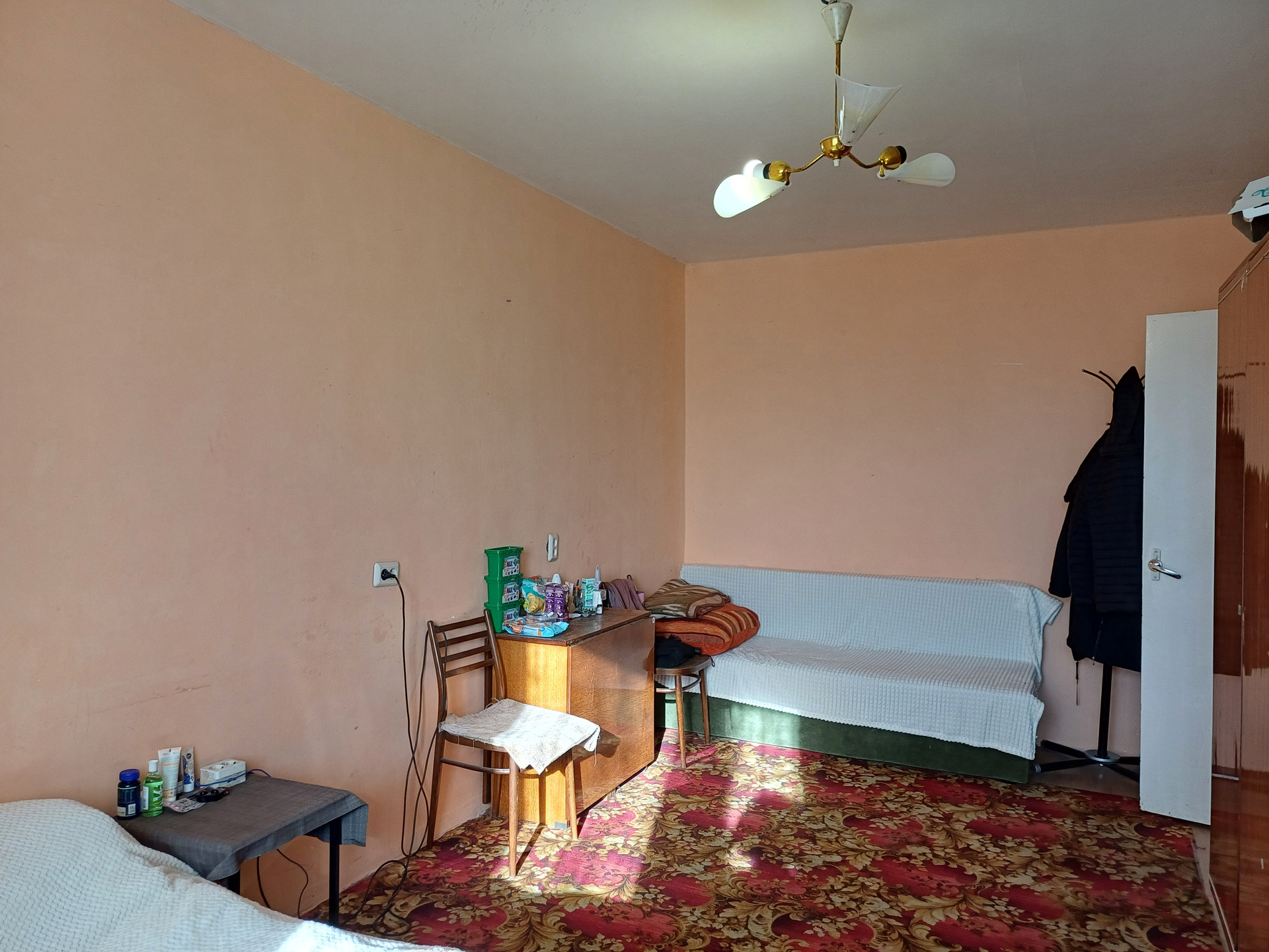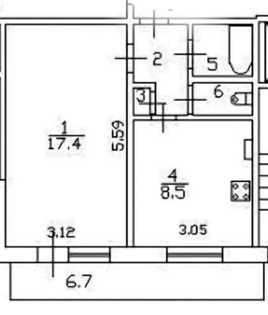 Квартира в обычном состоянии, что позволяет сделать ремонт по своему усмотрению, общая площадью 33,2 кв.м., комната 17,4 кв.м., ванна и туалет раздельно, кухня большая правильной формы 8,5 кв.м., огромный не застекленный балкон 6,5 м., с которого открывается шикарный вид.