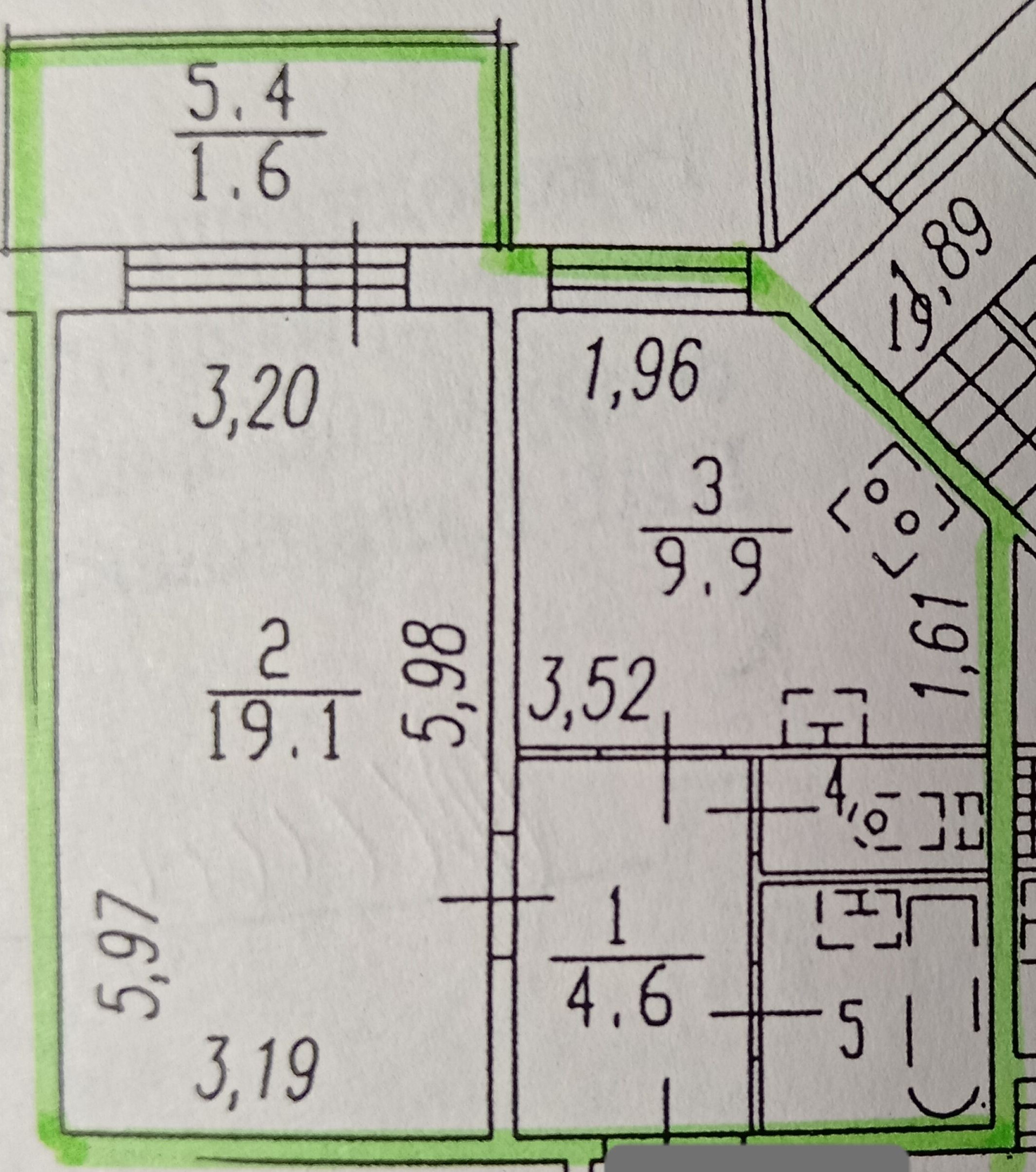 Общая площадь 38.2 м2