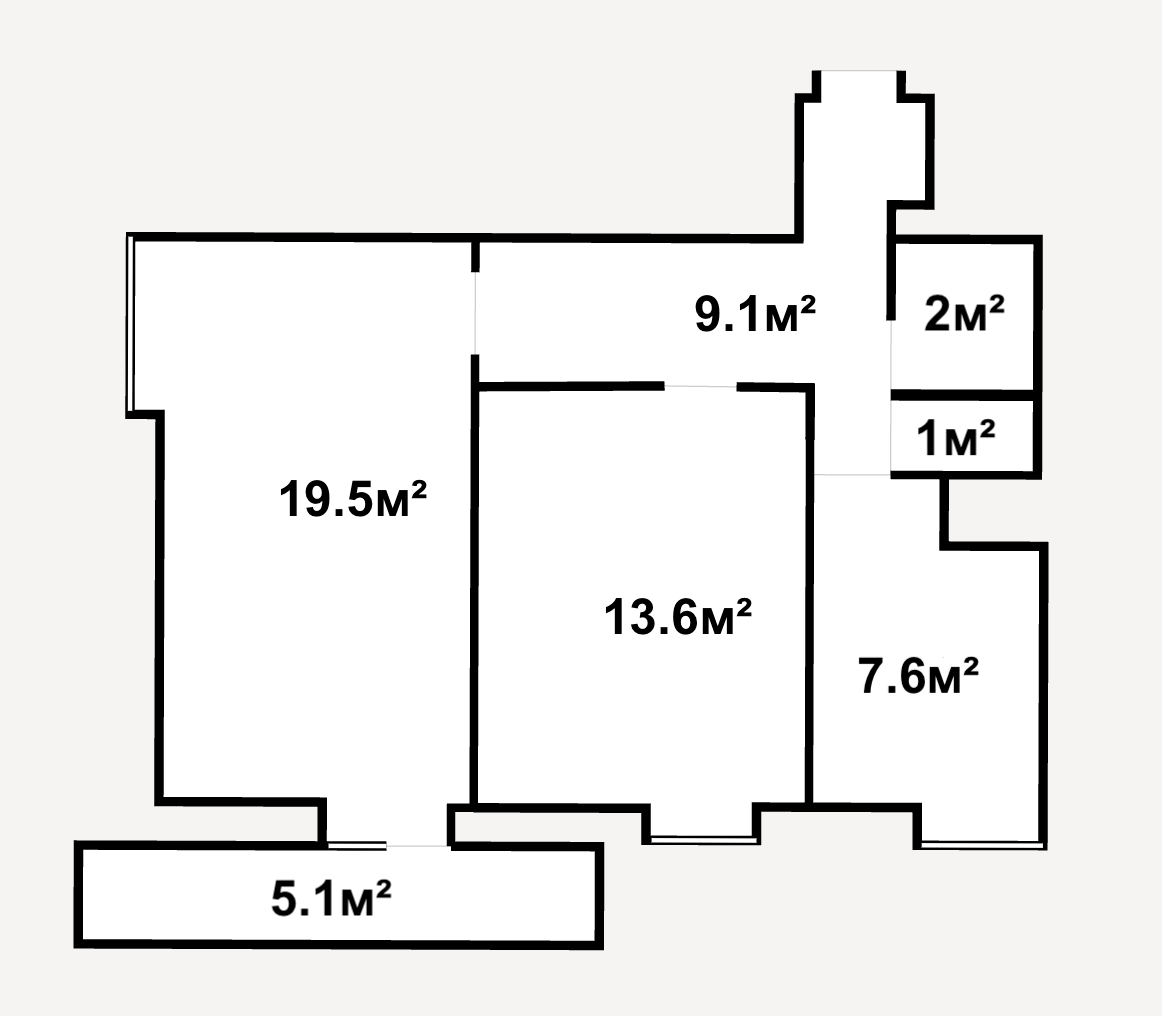 Комнаты – 19,5 м², 13,6 м²