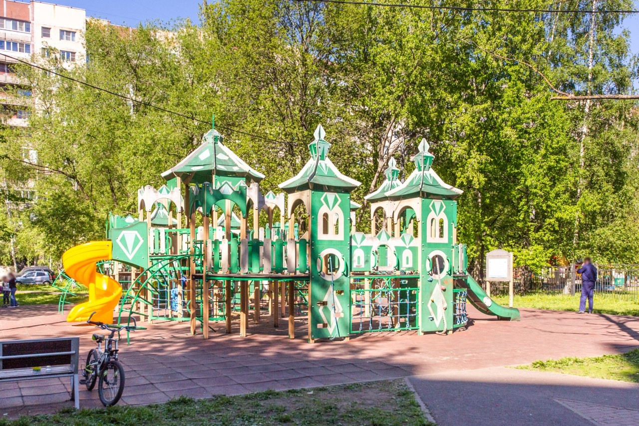 Огромное количество зелёных скверов вокруг дома. Спортивные и детские площадки практически в каждом дворе. До метро Ладожская, 10-15 минут, 20-25 минут и вы в центре города.