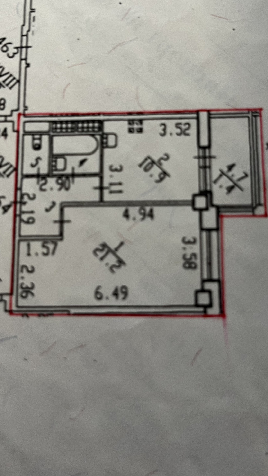 Жилая площадь 21.2 м2