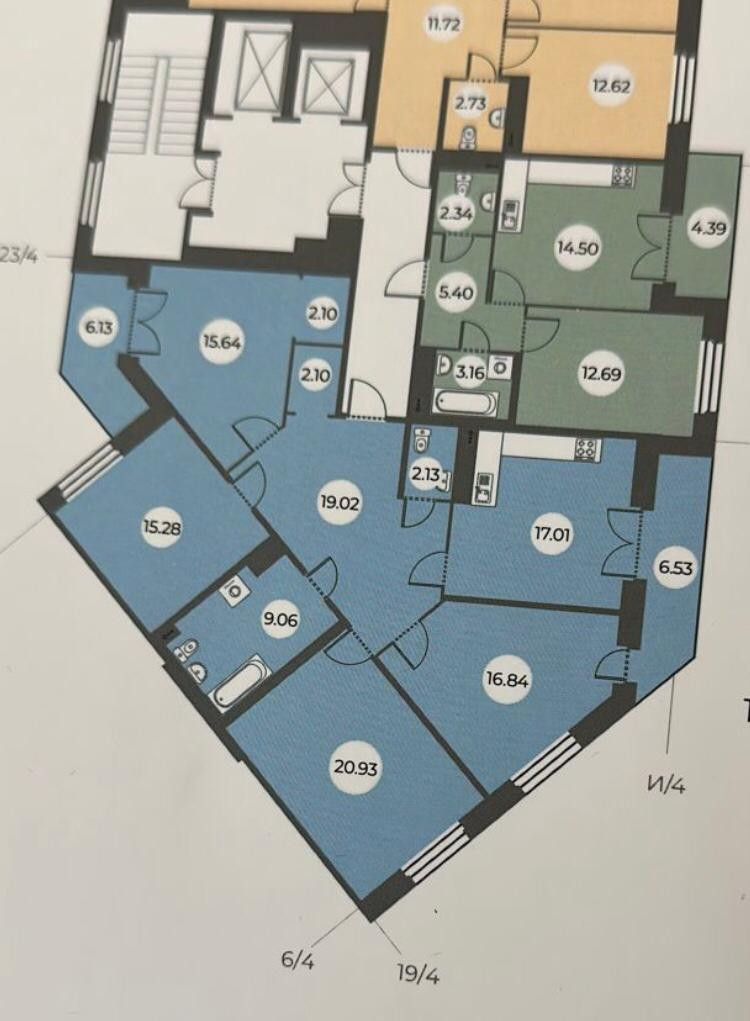 Жилая площадь 68.69 м2