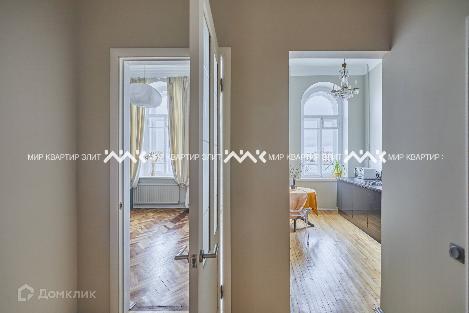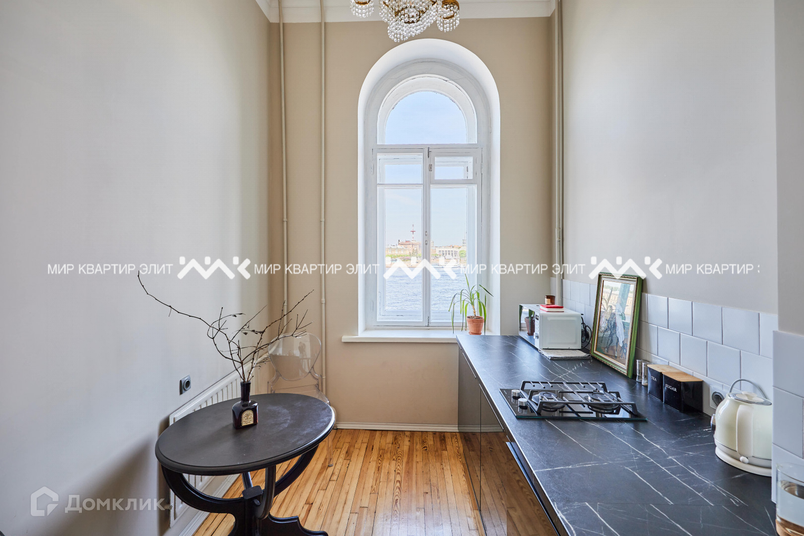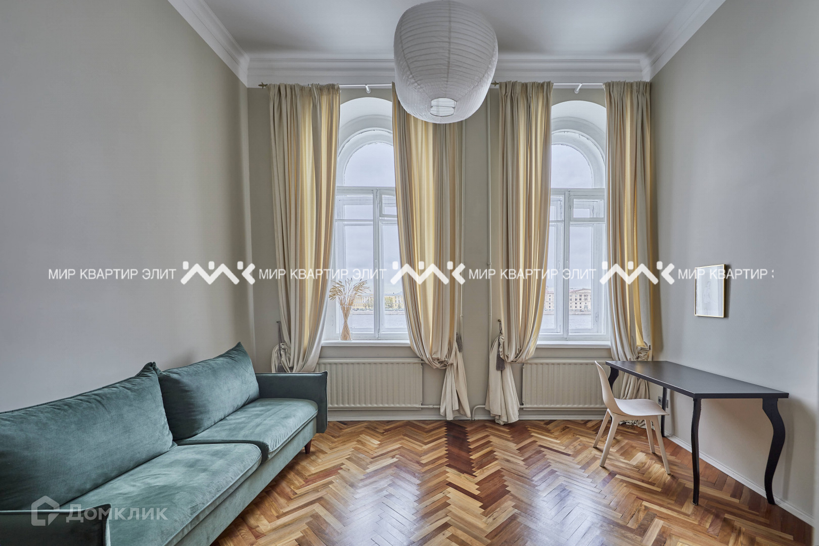 -Большие арочные окна наполняют квартиру светом.
